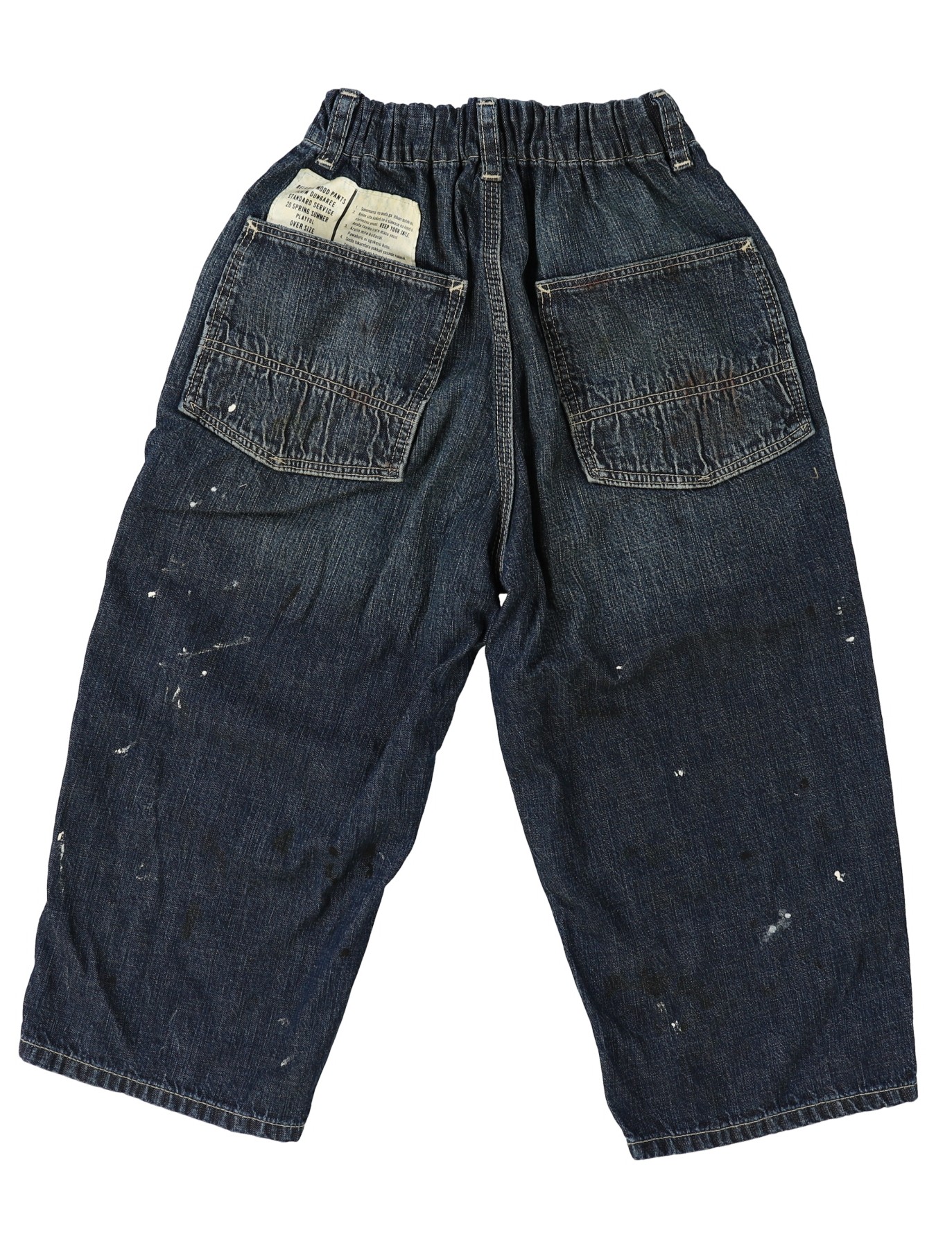 The 8oz Denim Remake Easy Pants by Denim Dungaree are made from Zimbabwean cotton denim, which has a natural faded color and a subtle sheen for an elegant appearance. The pants feature a fully elastic waist and include pockets on both the sides and the back.