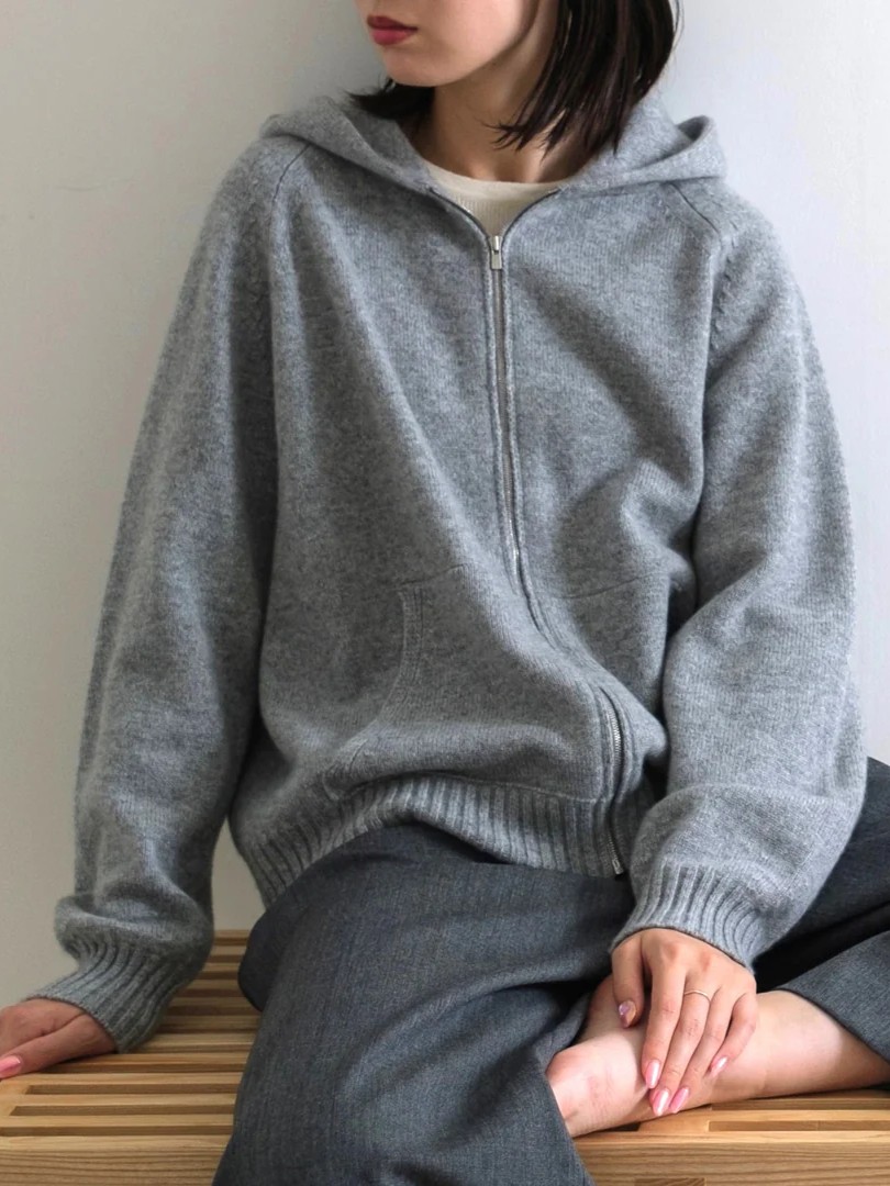 Designed with a voluminous hood that maintains a beautiful silhouette even when folded, this hoodie balances casual wear with refined elegance. Its basic design ensures it is suitable for everyday use while remaining polished enough to complement a neater, more formal style.