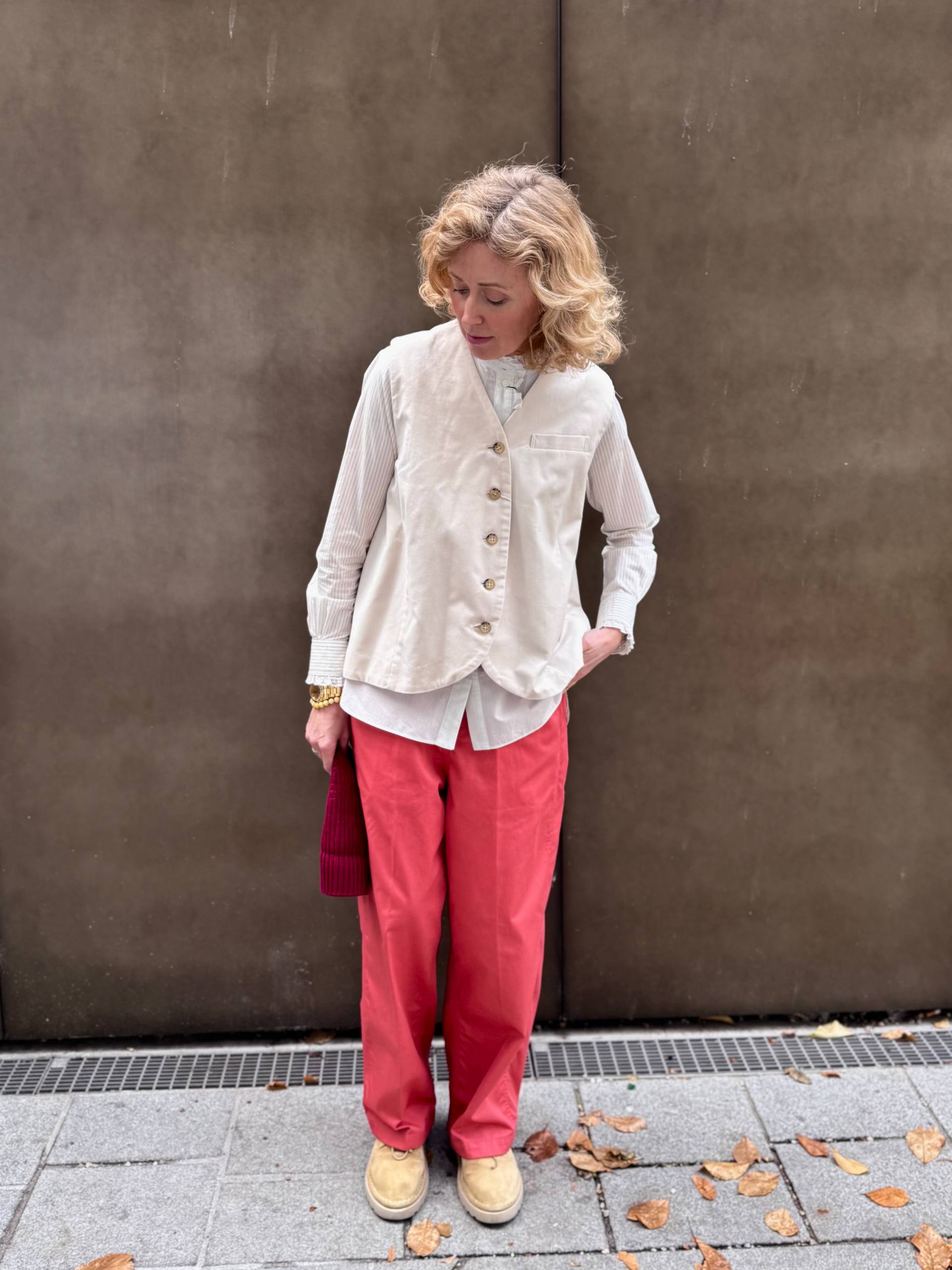 Shown here with the Twill Pants and Poplin Striped Ruffle Blouse