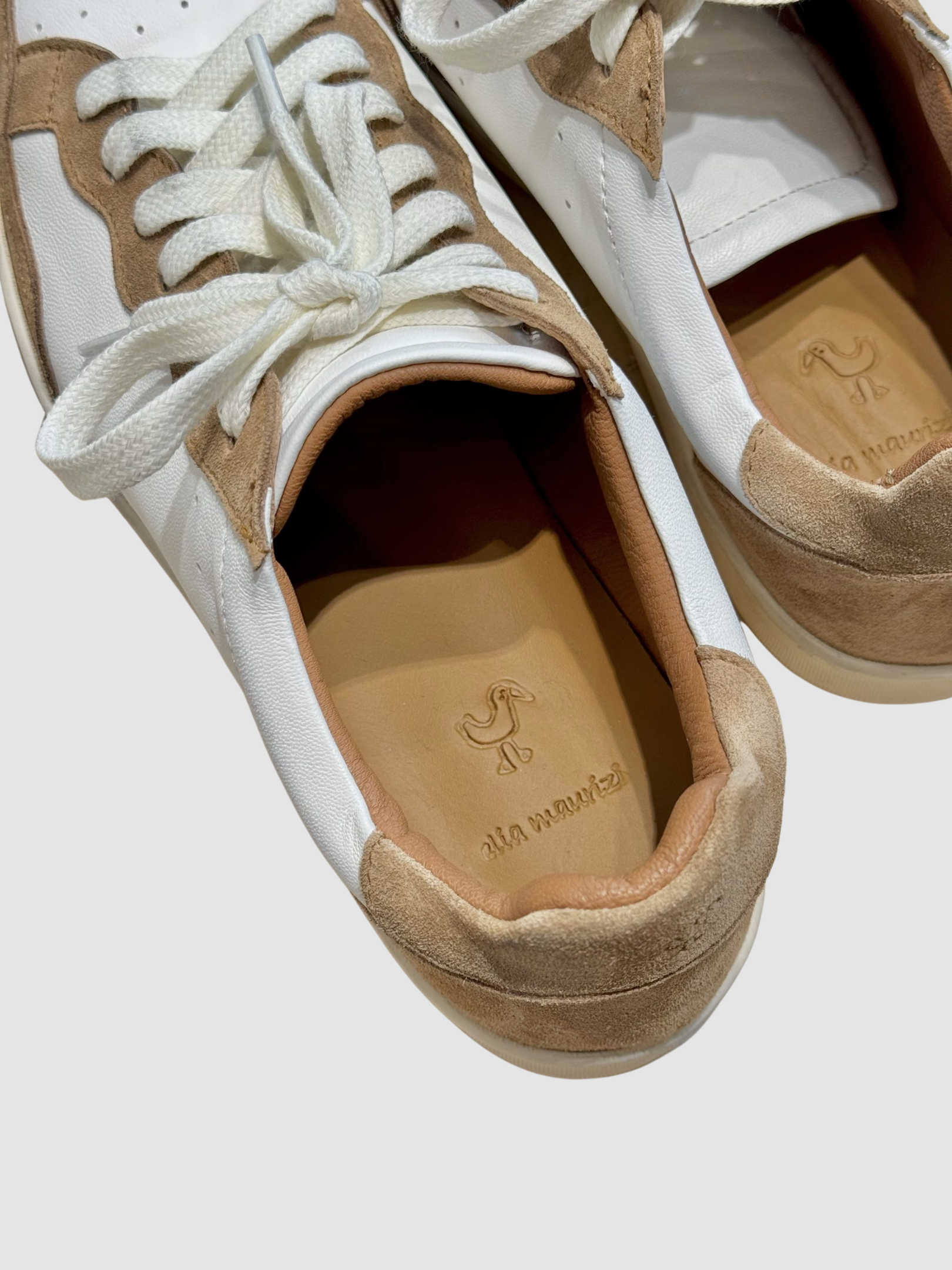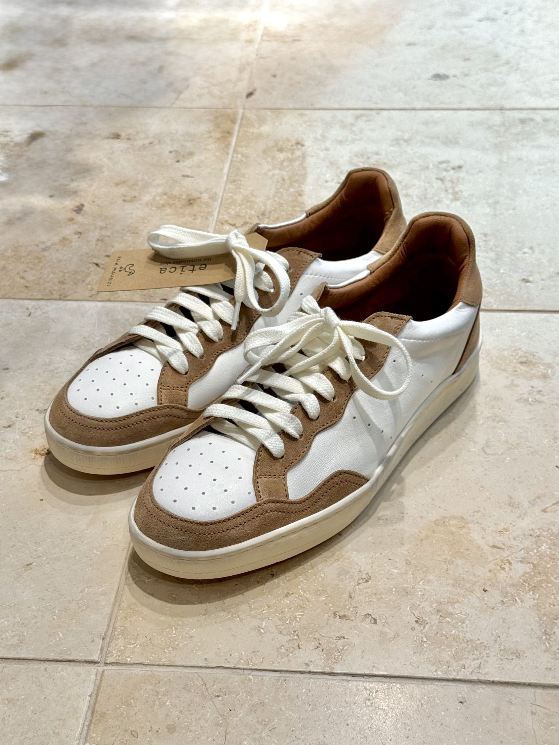 The May Vintage Panna Sneakers by Elia Maurizi are a high-tier example of artisanal construction, handcrafted from premium vegetable-tanned calf leather with a distinct natural grain and soft nappa leather. This silhouette is defined by elegant suede overlays that provide a rich, multi-textured aesthetic.