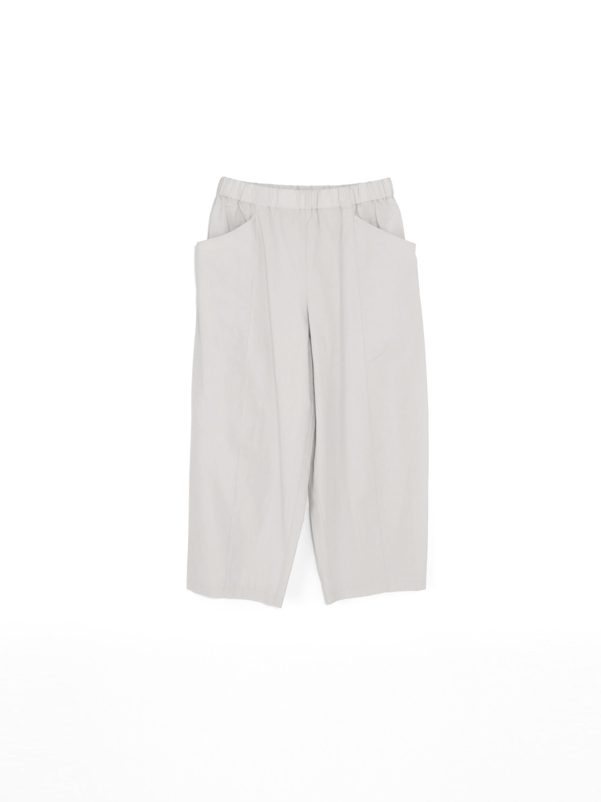 The Cotton Cropped Pants by Evam Eva are constructed from a cotton material characterized by a firm yet resilient texture, specialized with a treatment that produces a soft, washed-out feel. This minimalist design emphasizes a natural, three-dimensional silhouette with a relaxed fit that keeps the fabric away from the skin for increased comfort.