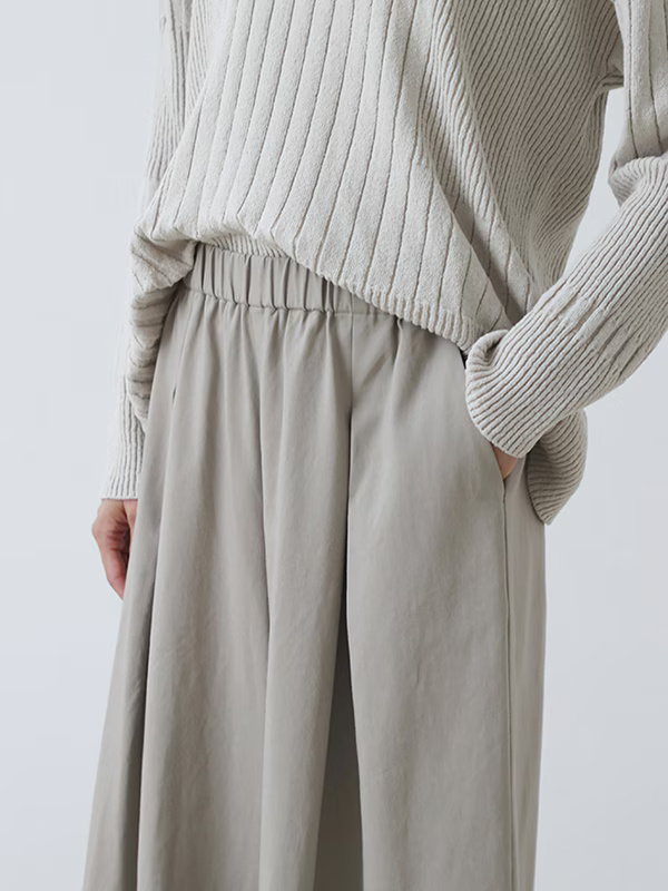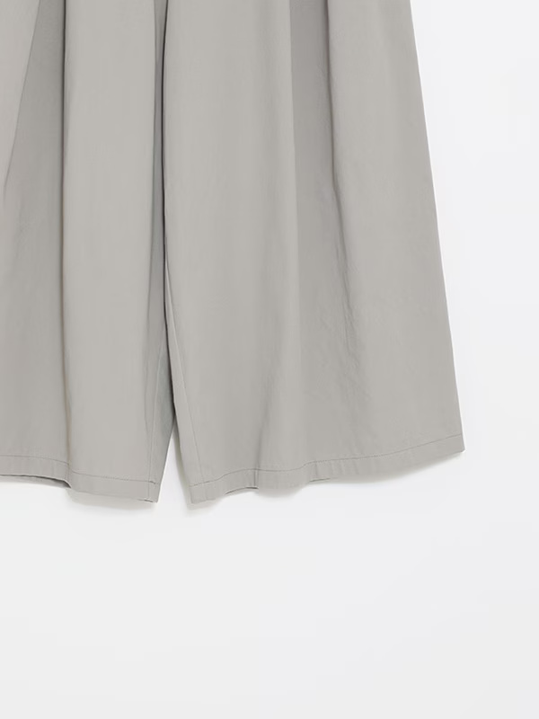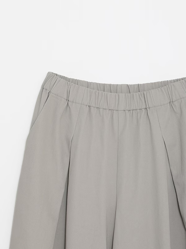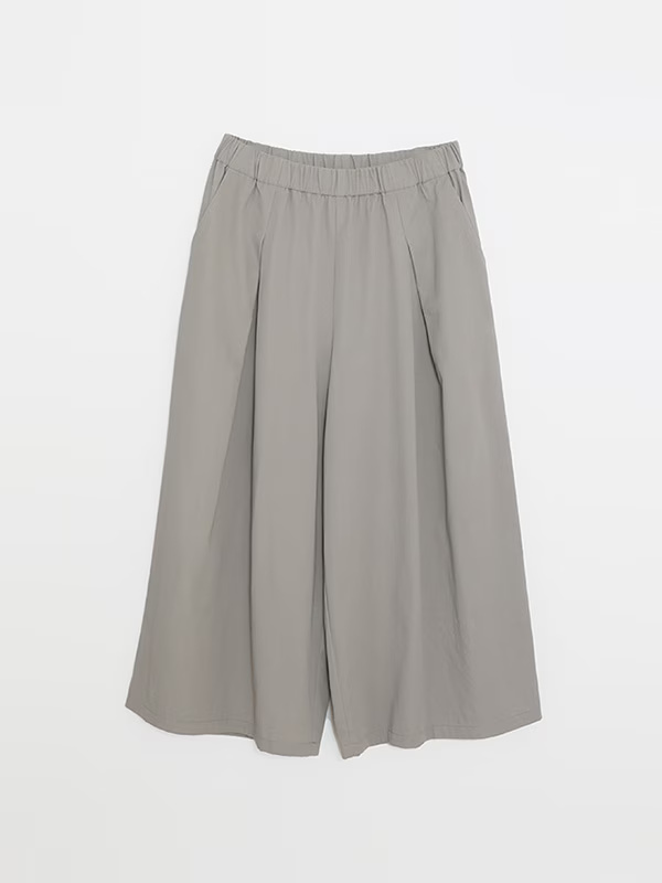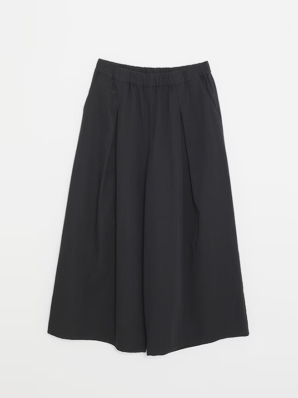 These culottes feature a feminine silhouette with a drape that expands from the tucks, creating a moderate flare. Designed for comfort and ease of wear, this garment coordinates effectively with a wide variety of styles.