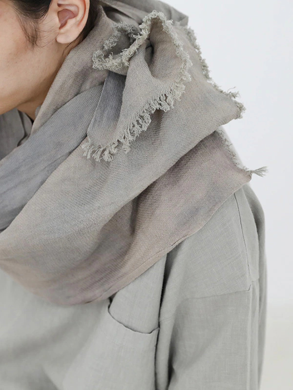 The Co/Li Stole by Evam Eva is a high-quality accessory crafted from a blend of linen and smooth-textured cotton featuring lustrous thread. It is characterized by a soft, dreamy feel and a unique pattern and color for each individual piece, achieved through a specialized gradation dyeing technique. Designed to blend effectively with other garments, this stole serves as a striking focal point that enhances the overall coordination of an outfit.