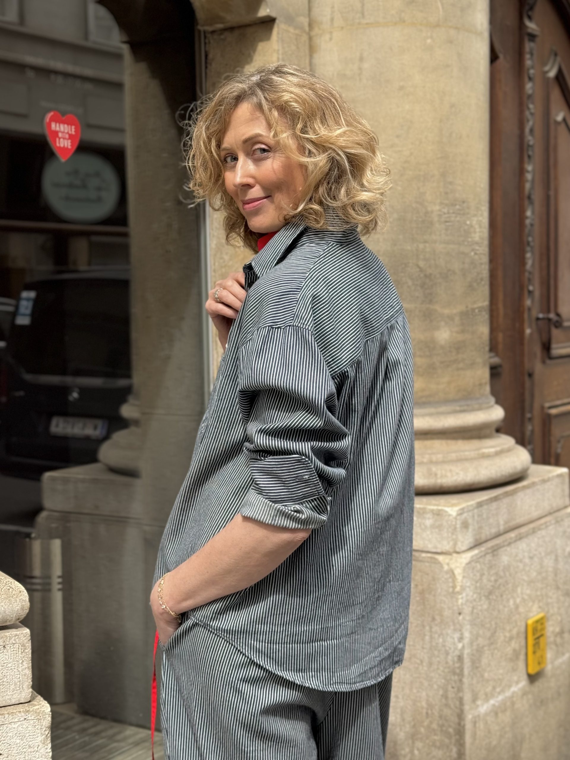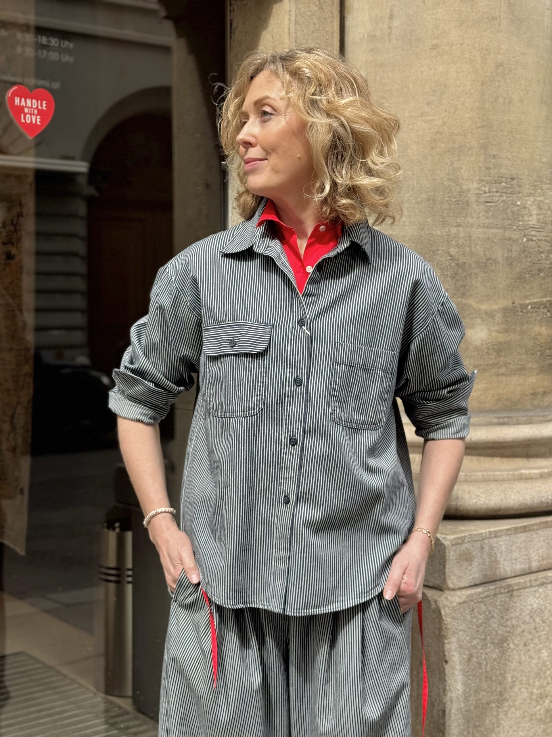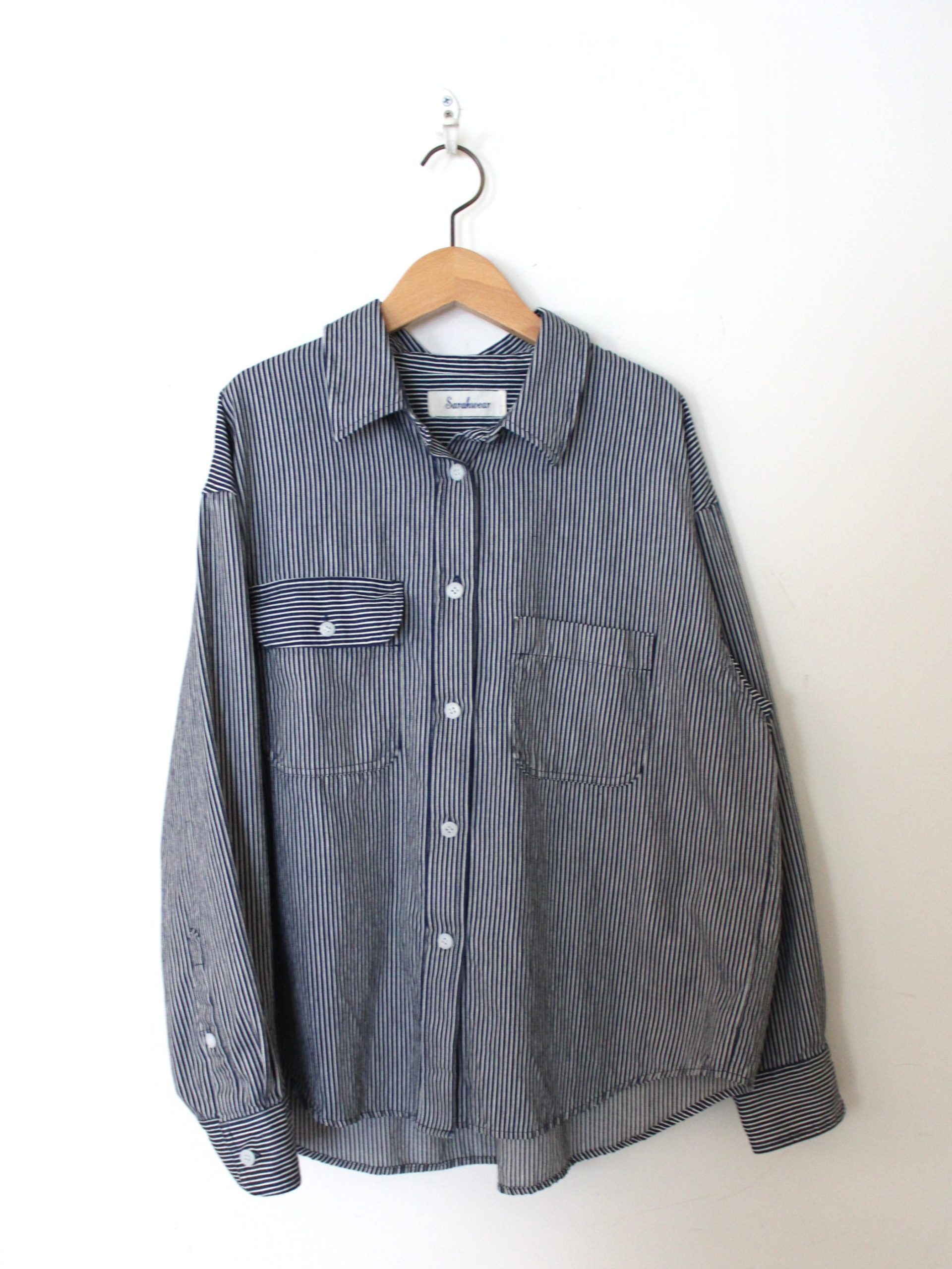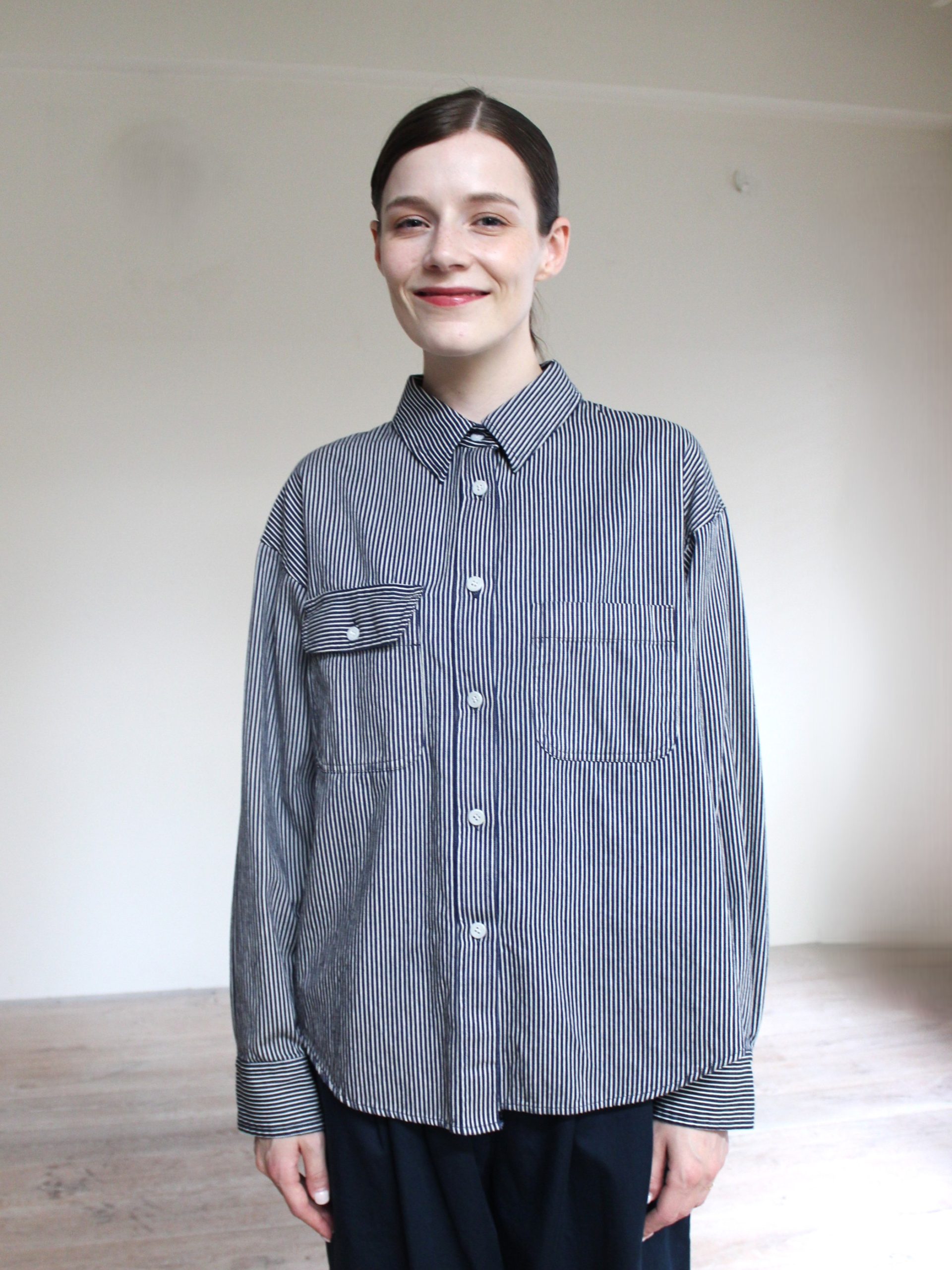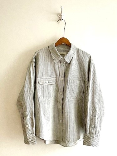 The Fine Hickory Ranch Shirt by Sarahwear is an adaptation of a 70’s work shirt modified to suit modern women. The shirt is crafted from a specialized hickory fabric that is characterized by being very light, supple, and soft. This material choice provides a refined take on traditional workwear textures while ensuring the garment remains comfortable and easy to wear.