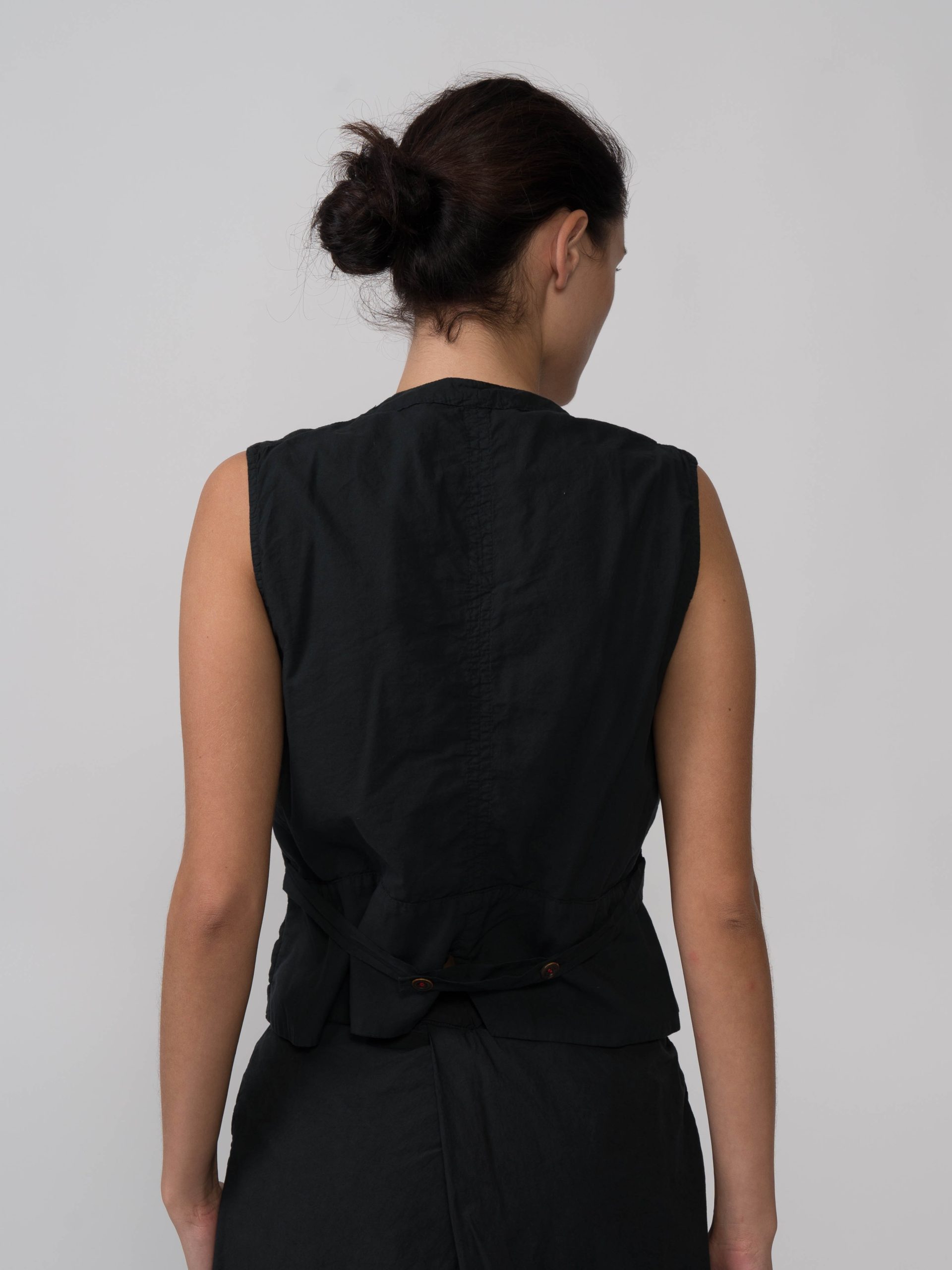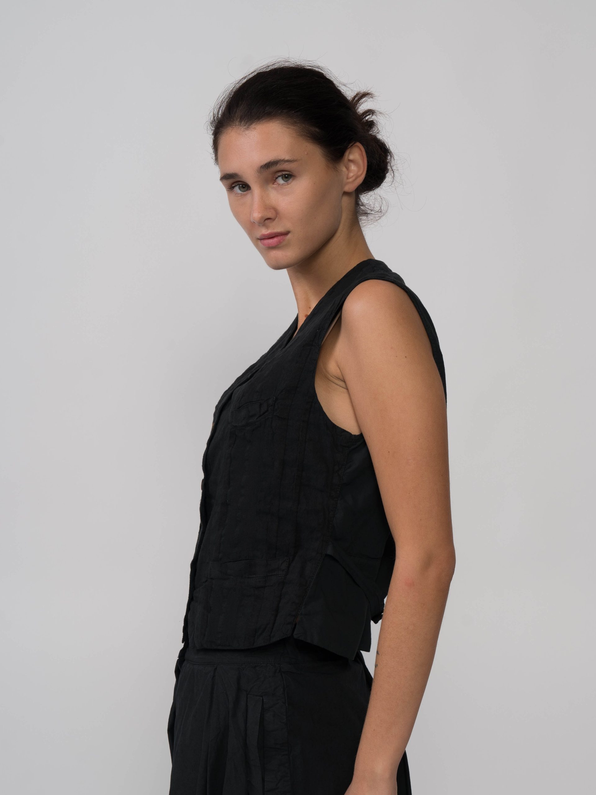 The GERTRUD Gilet by H+ Hannoh Wessel is a tailored, button-front vest featuring a structured silhouette.