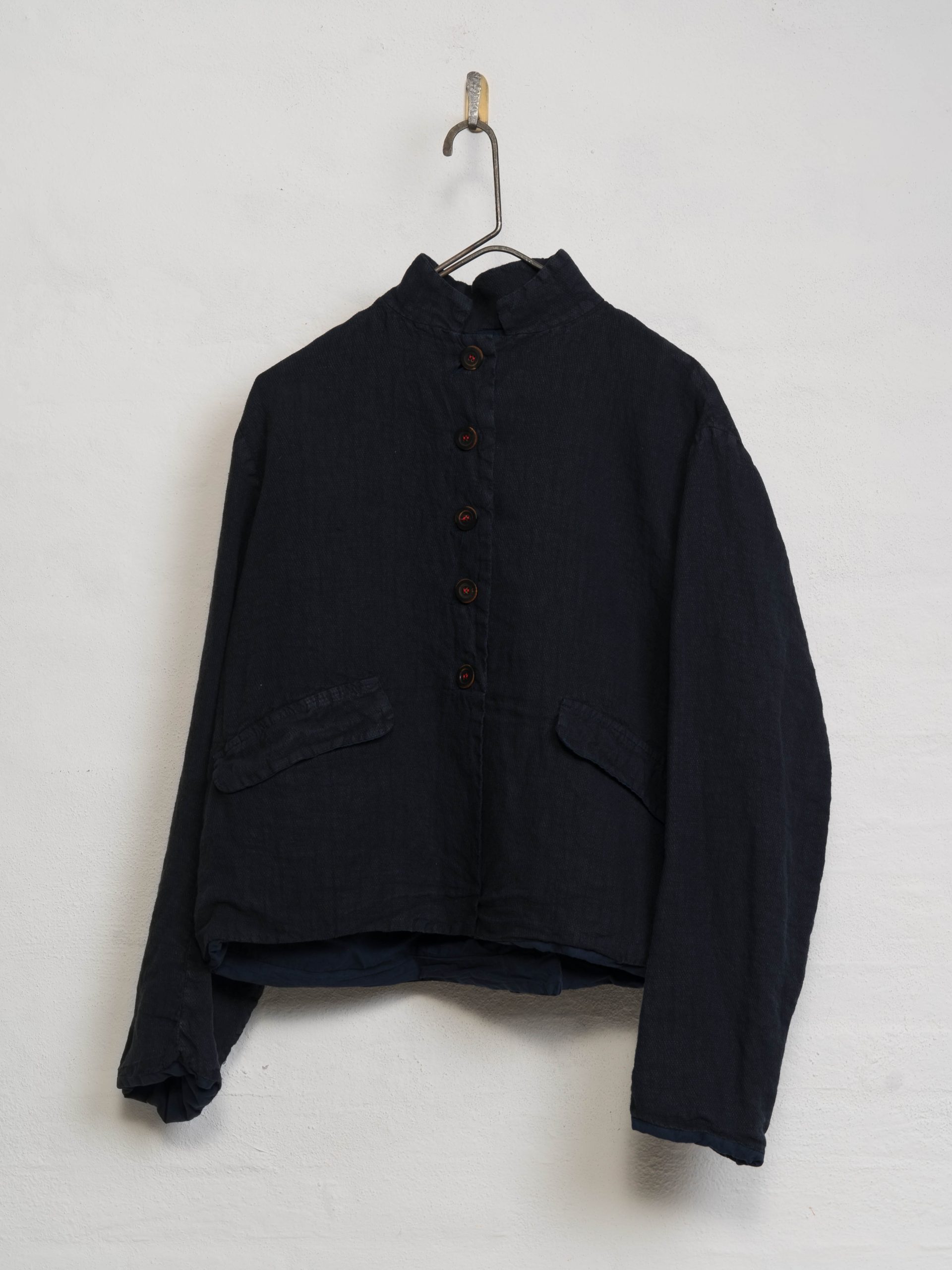 The Julia Jacket by H+ Hannoh Wessel is a single-breasted, five-button blazer featuring a notched lapel and a straight-cut silhouette.