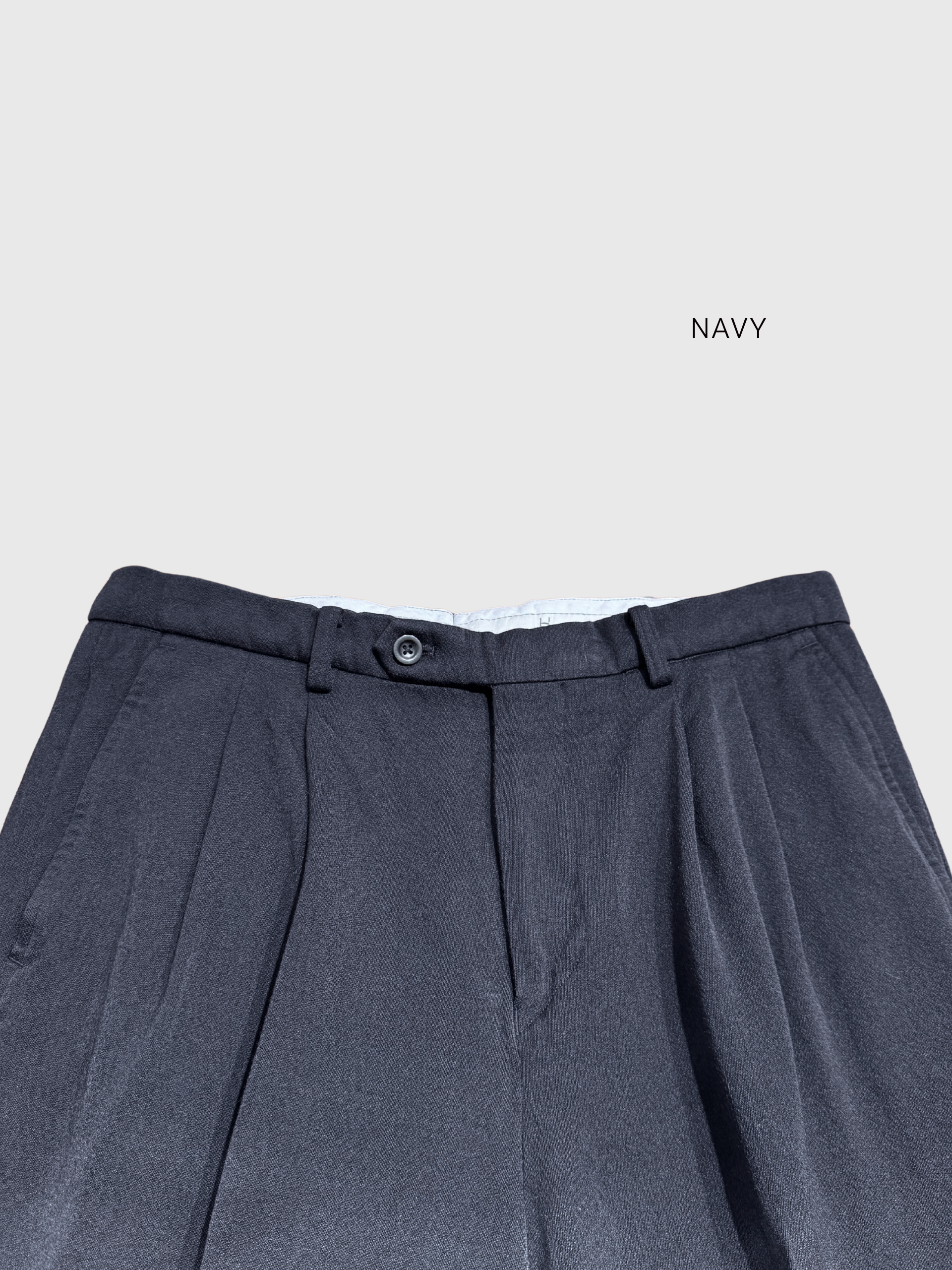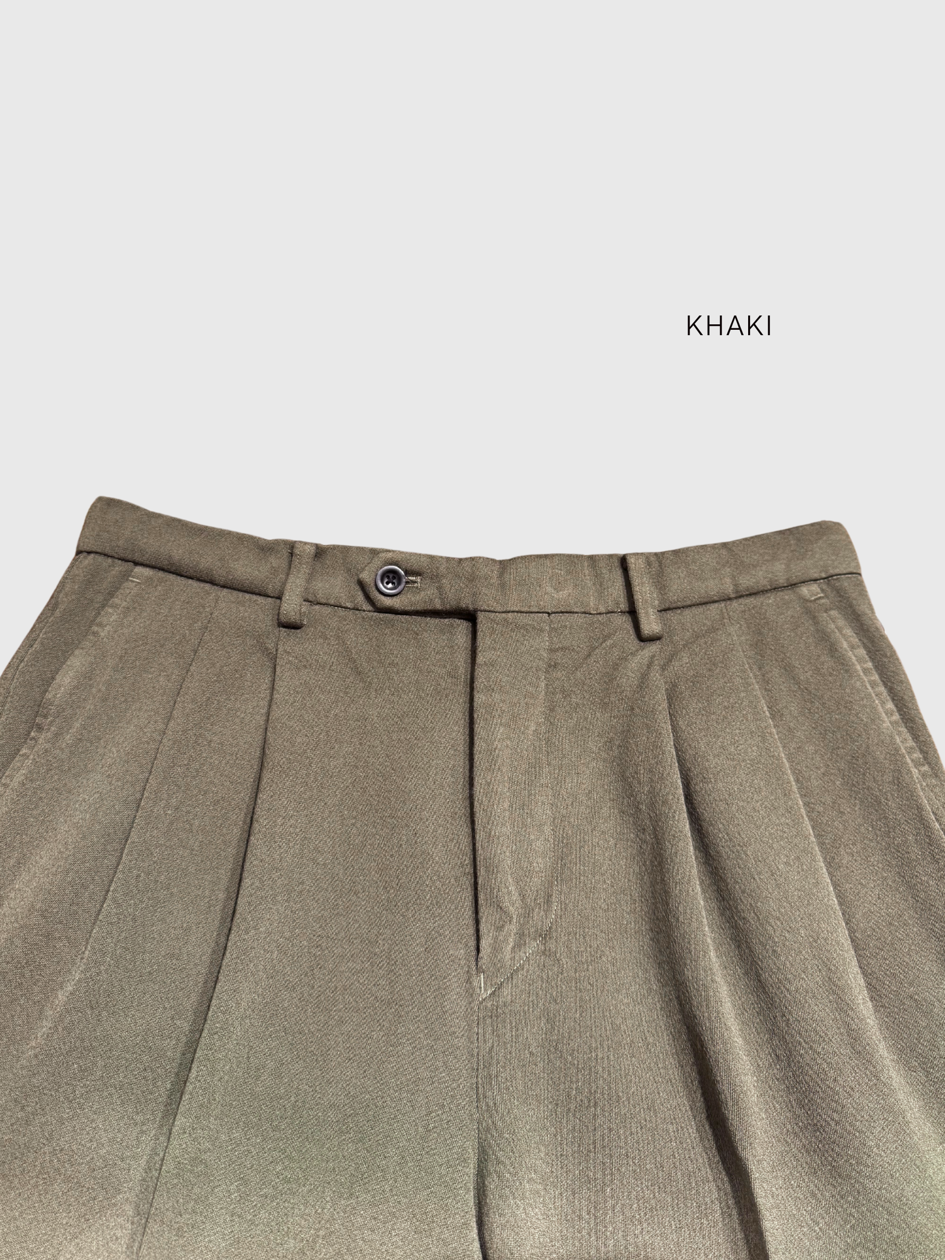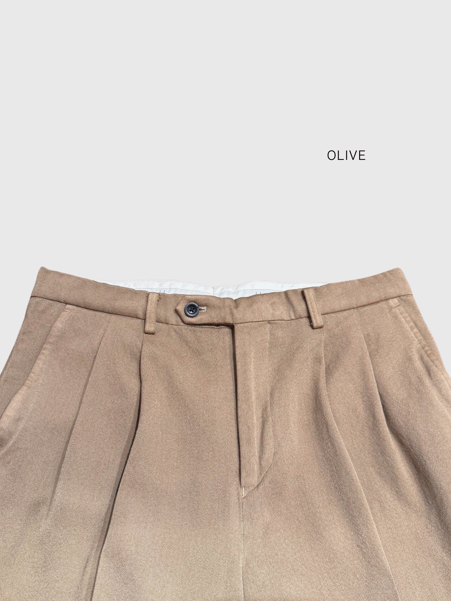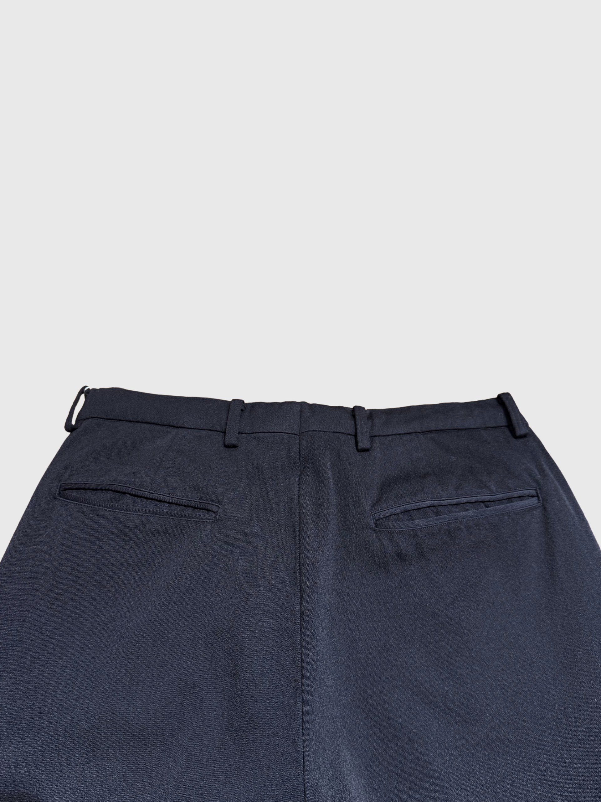 The Back Satin Wool Pants by HERILL are trousers crafted from wool back satin fabric. The material is characterized by its firm, thick texture while maintaining a smooth hand and excellent drape. The fabric possesses a subtle sheen and a washed look, giving this beautiful material a finish that is suitable for casual wear.