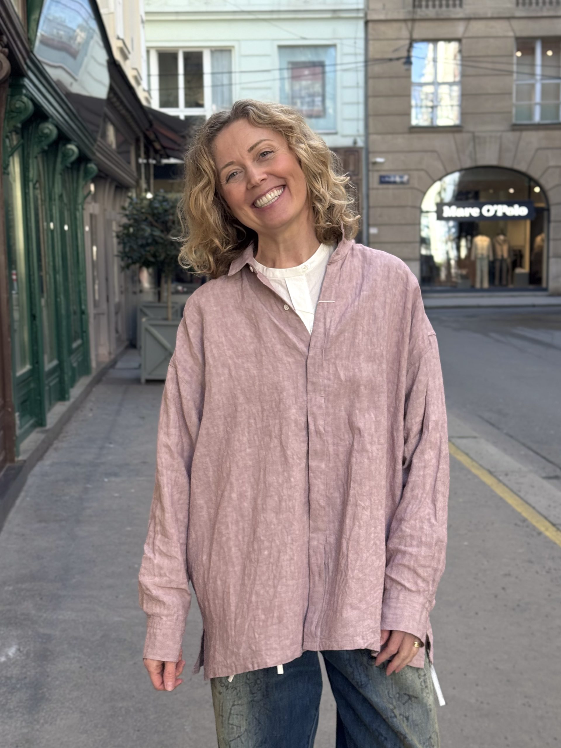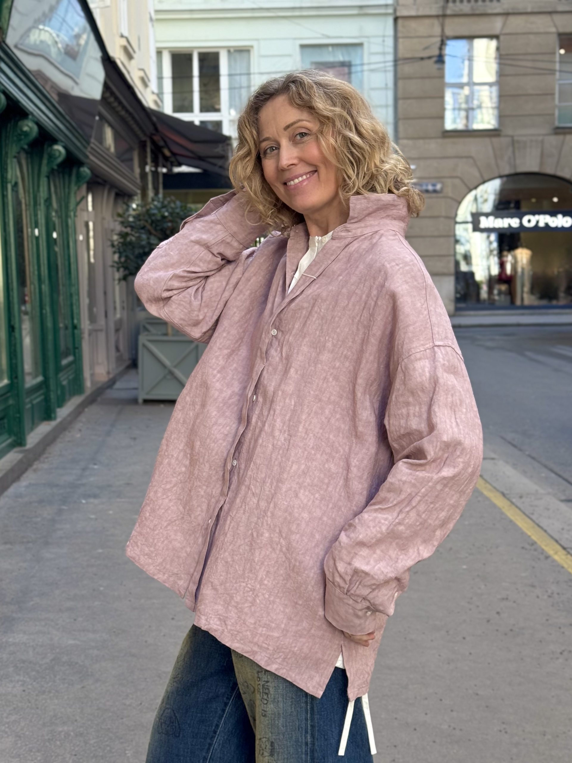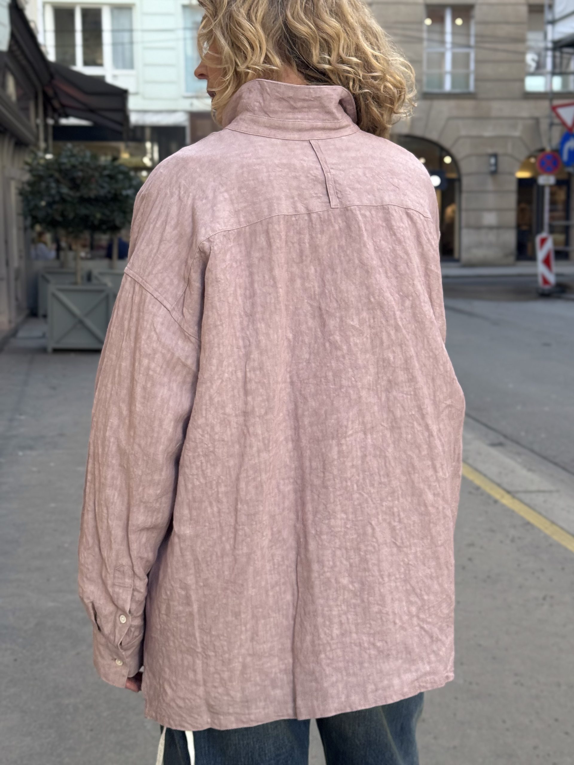 Due to its substantial material weight and airy fit, it is suitable for use as a light jacket during the summer and warm spring months.