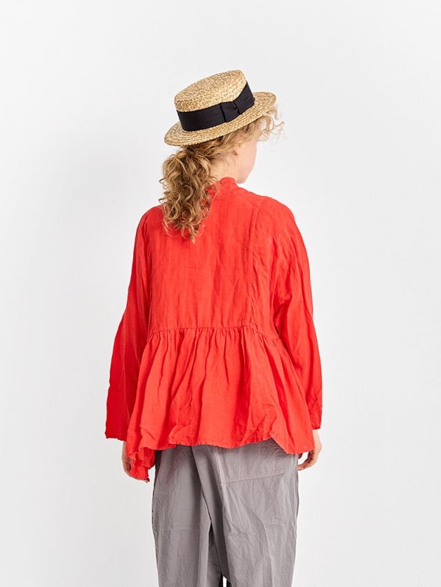 The Linen Cache-Coeur Jacket by Veritecoeur has a wrap-around design. It is made with a generous amount of rich linen and has fine gathers at the waist. The lower half is lined with a different material to add the right amount of volume.