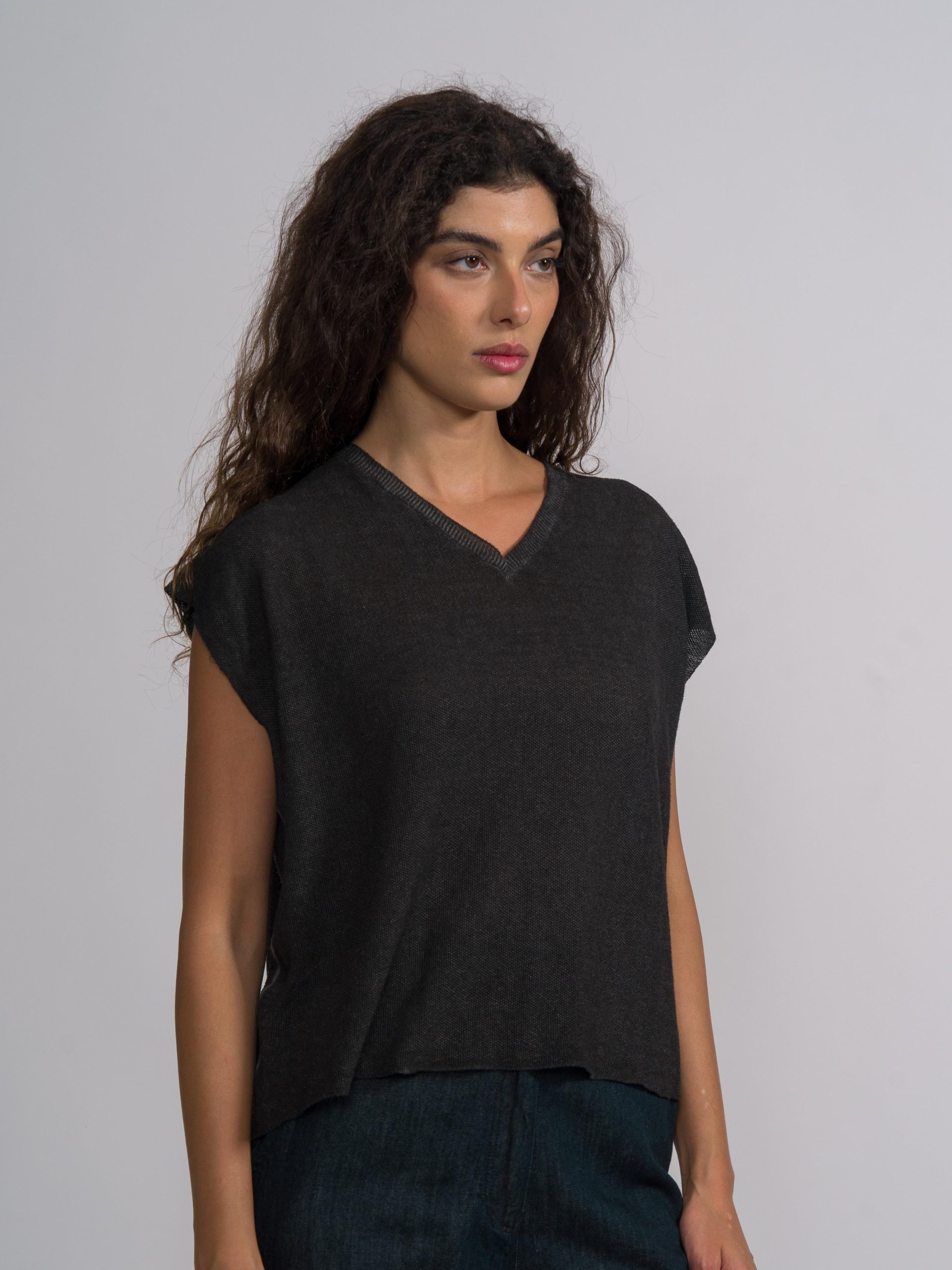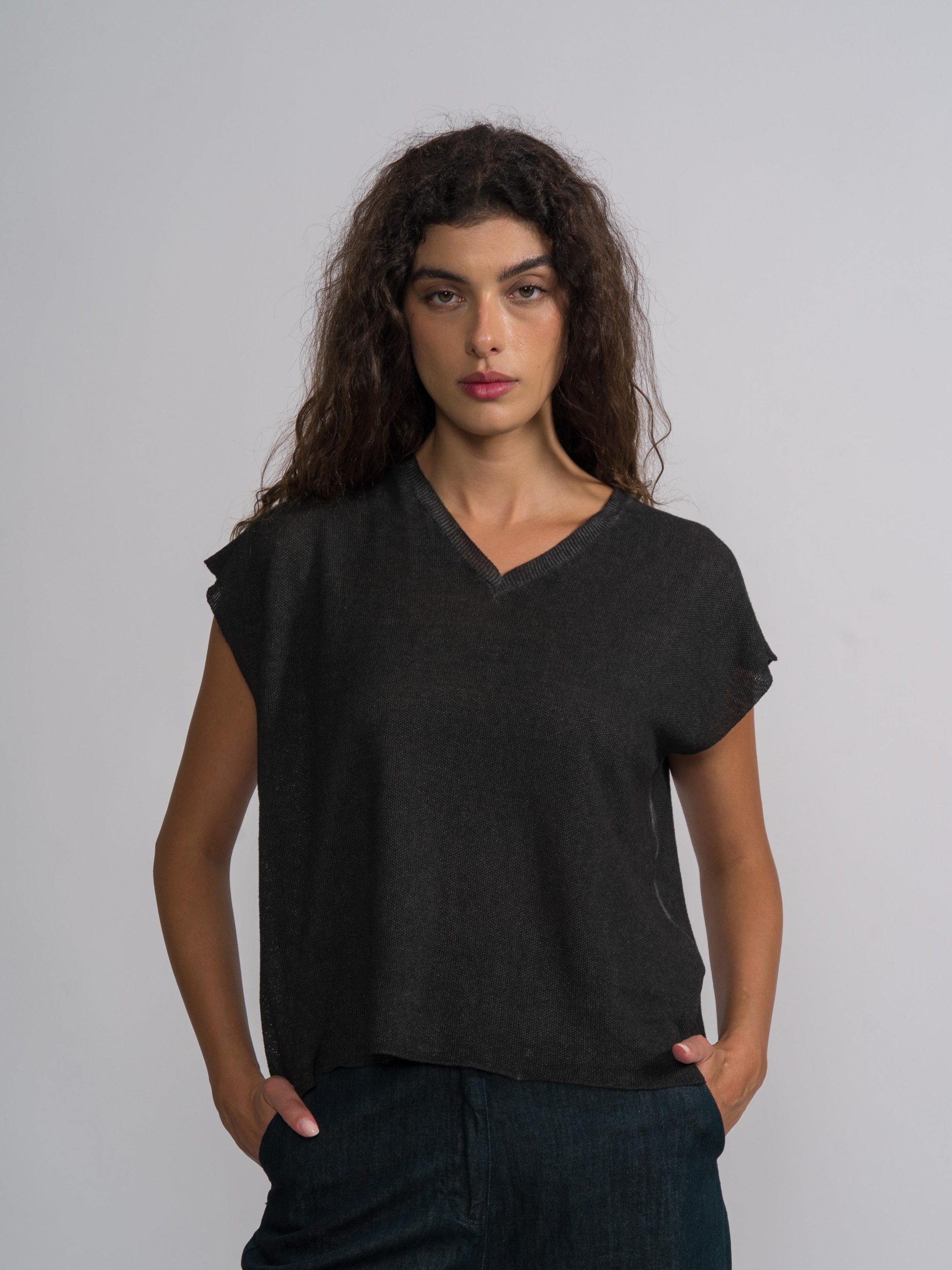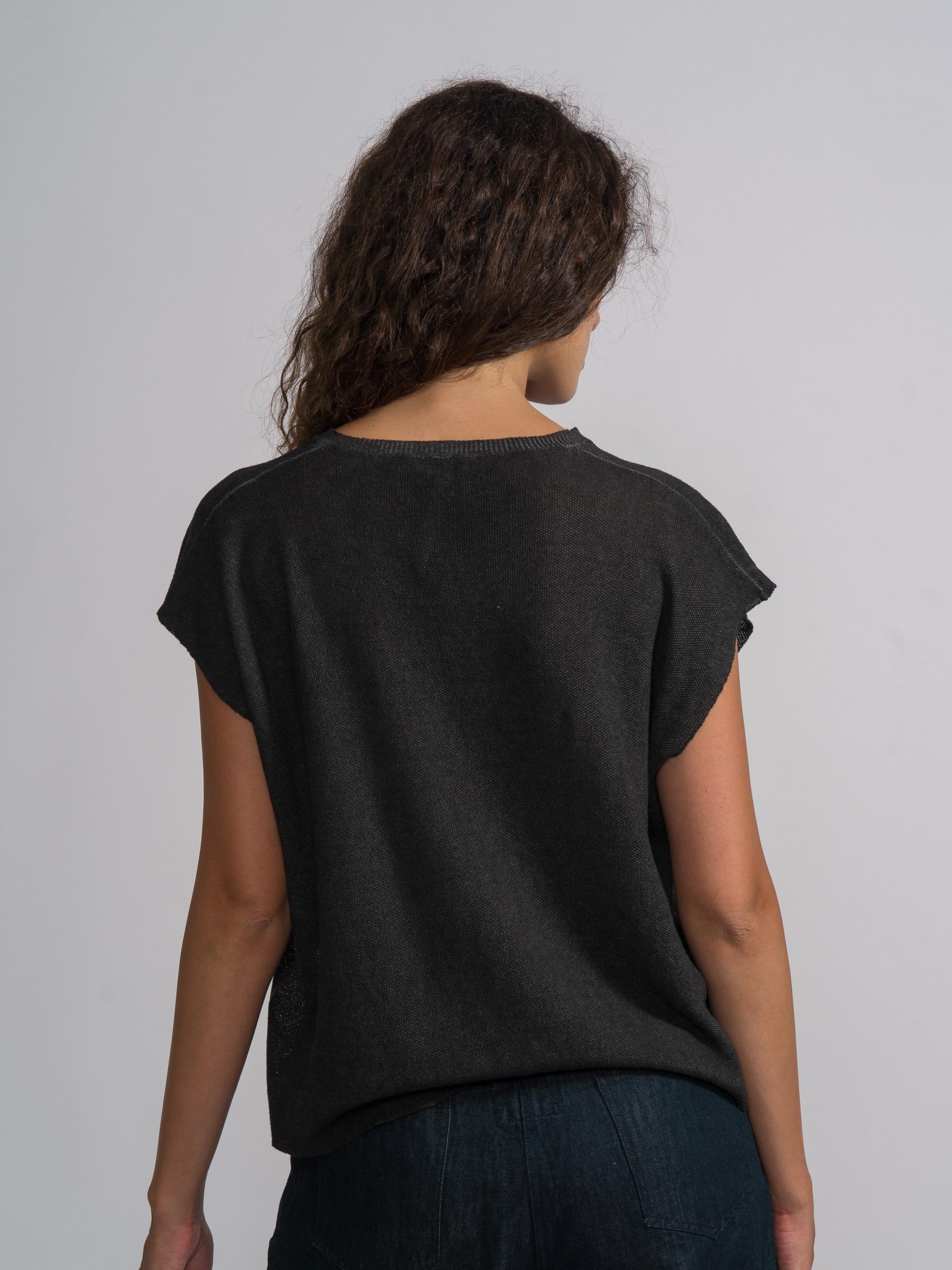 The Dye Linen Cotton Top by MJW is a relaxed-fit, short-sleeved top featuring a wide round neckline and dropped shoulders. It is constructed from a breathable linen-cotton blend that exhibits a natural, slubbed texture and a soft, garment-dyed finish