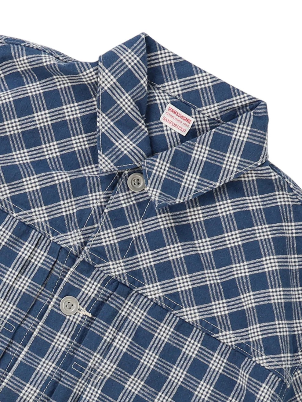 The Palaka Plaid Jacket by Denim Dungaree is constructed from a cool-feeling palaka check fabric, meticulously woven in a plain weave using a blend of cotton and linen threads in both the warp and weft. This specific textile combination ensures a lightweight, breathable profile ideal for varying temperatures.