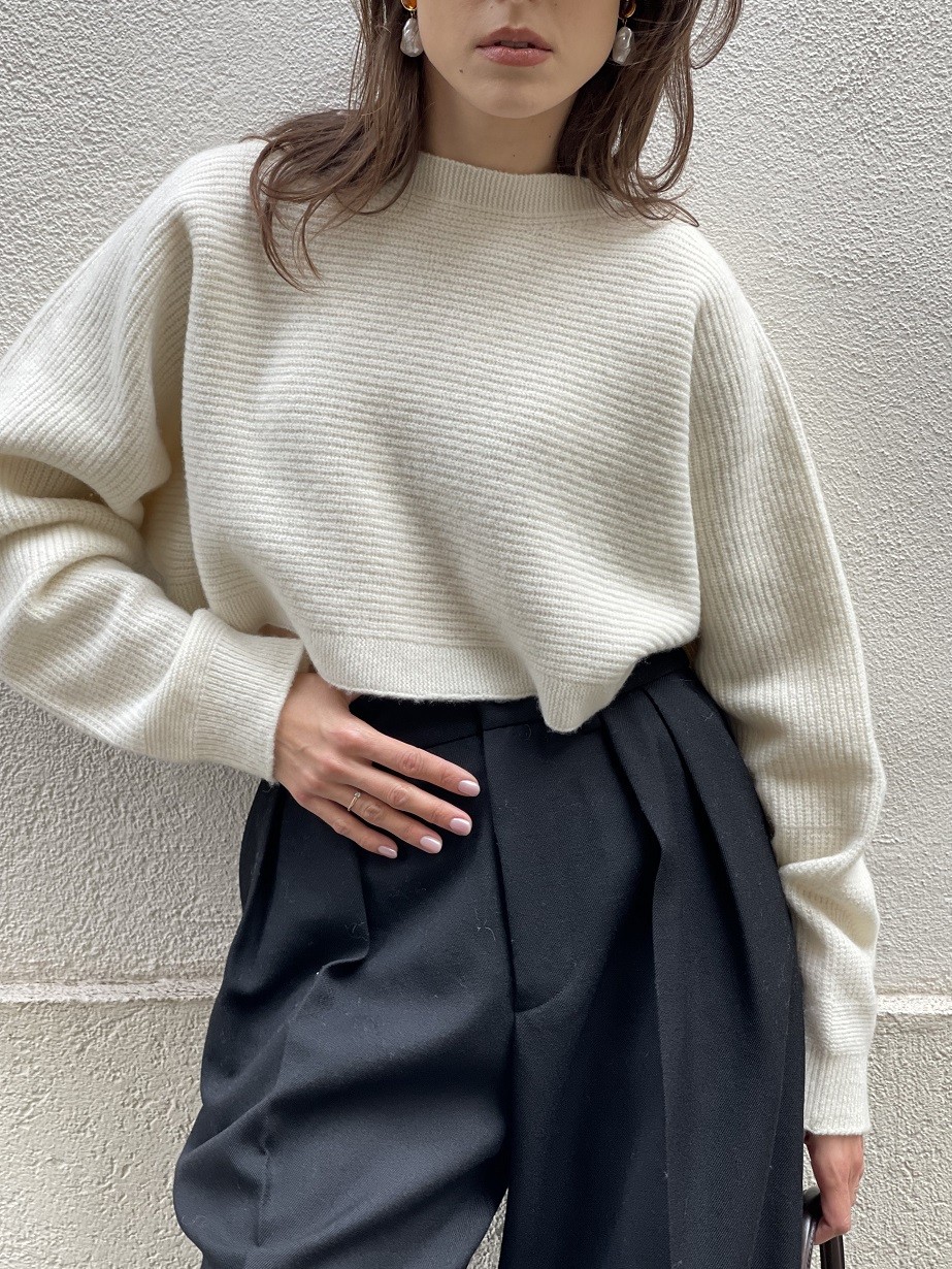 A low gauge short pullover that accents your layered style. Layer a long shirt underneath for a statement look, or wear it on its own paired with a high-waisted skirt or trousers.