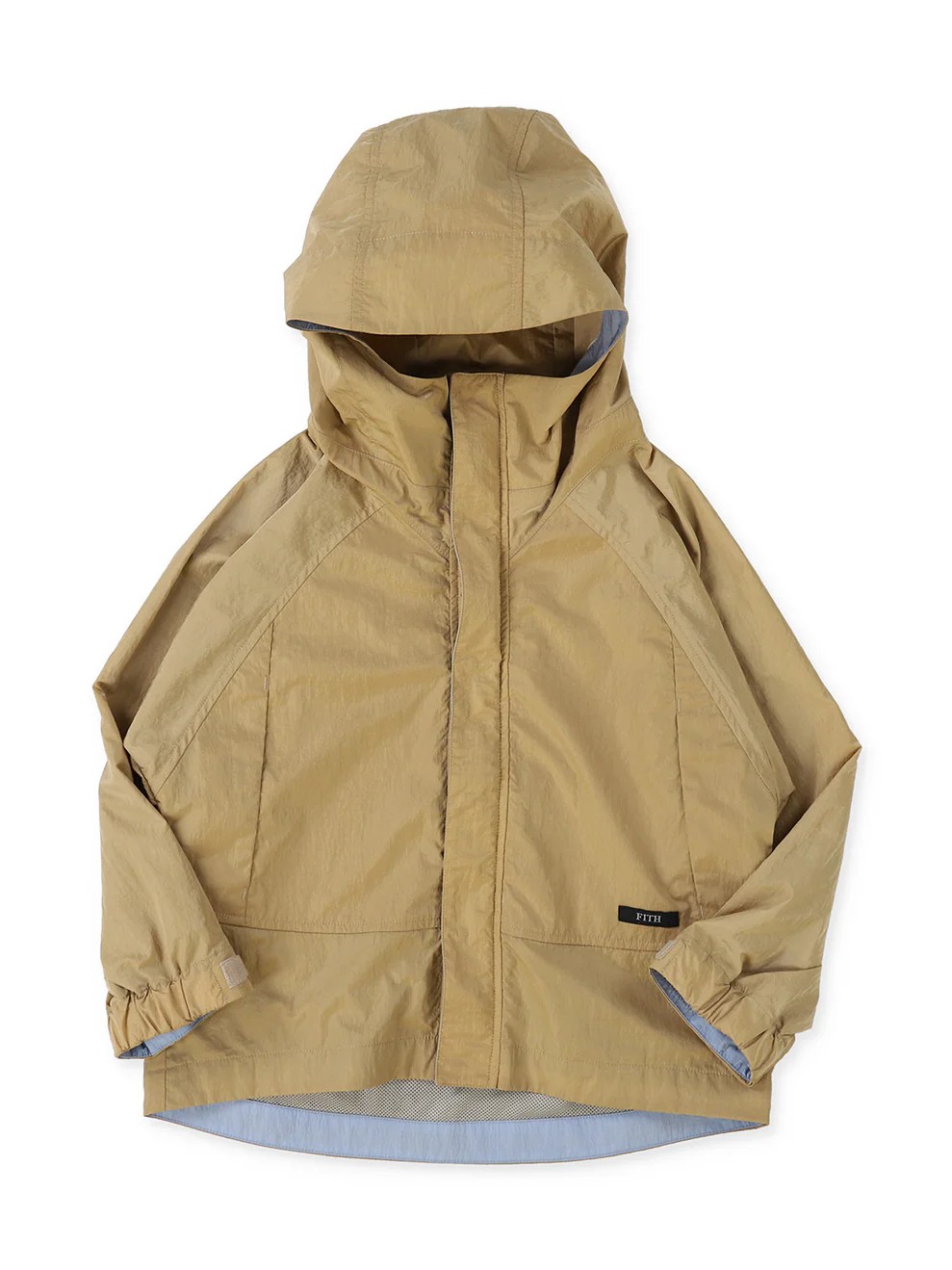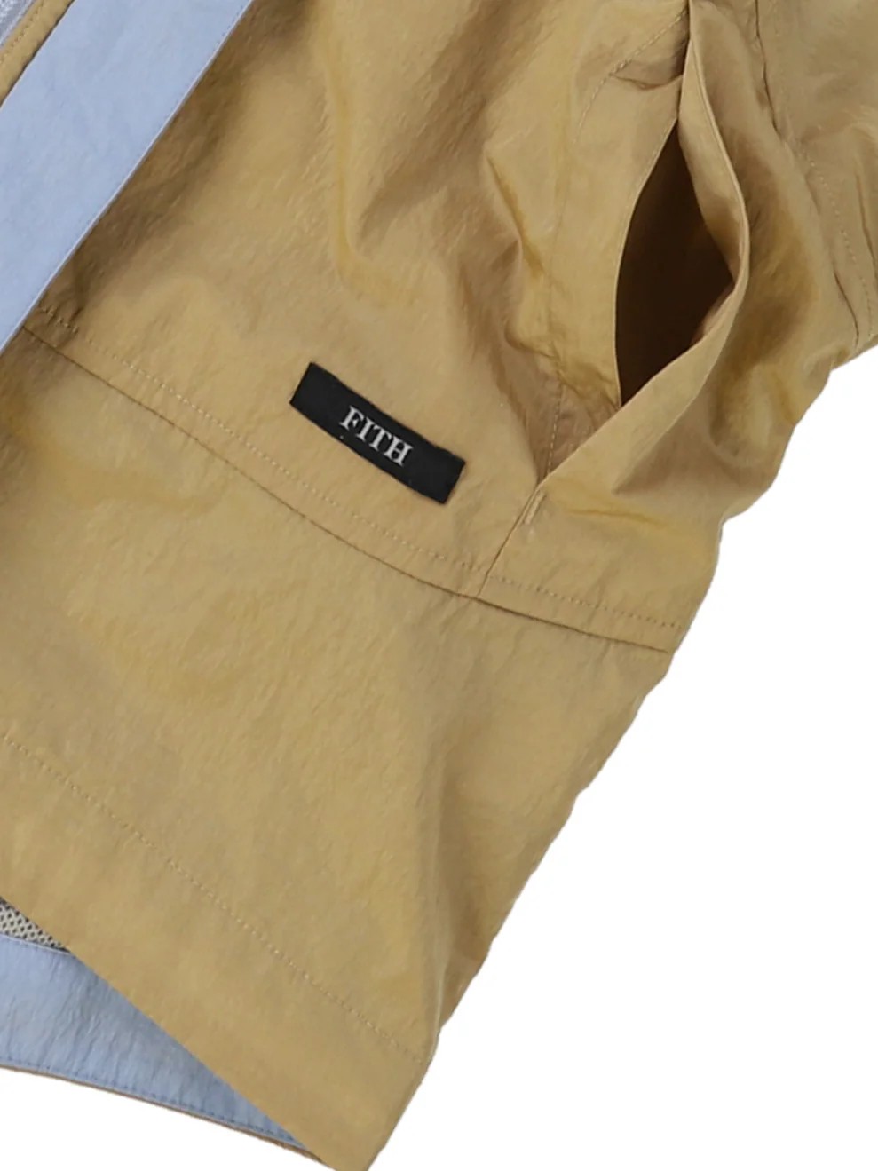 The Recomfy Taffeta Blouson by FITH features a signature color scheme and is constructed from a sustainable fabric made of nylon recycled from textile waste. Despite its fine 20-denier count, this slightly thin plain-weave taffeta maintains the high durability and strength characteristic of nylon, effectively balancing environmental friendliness with functional performance.