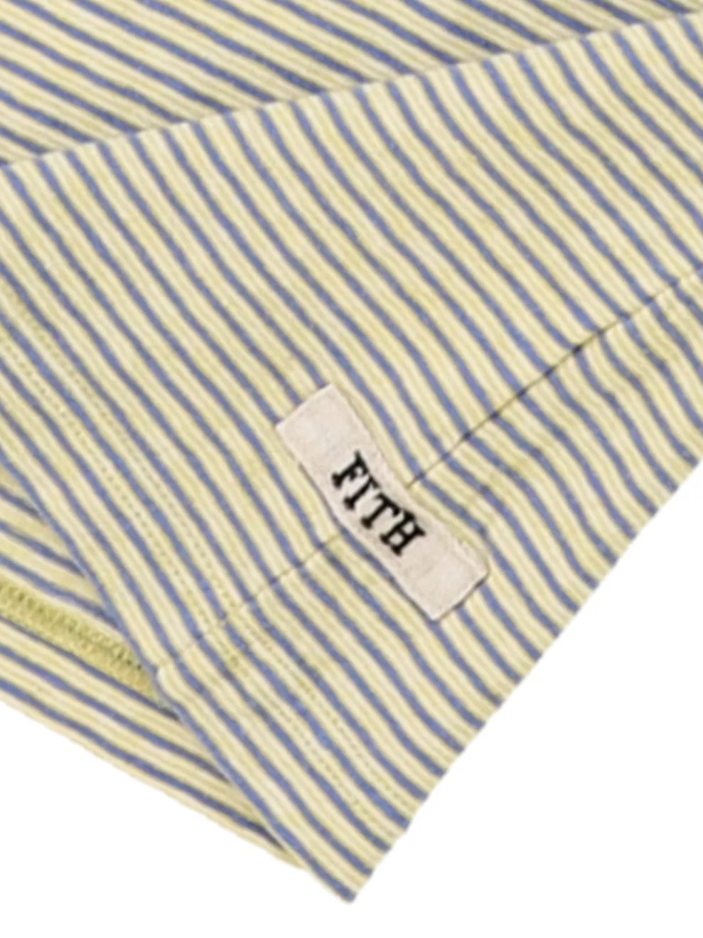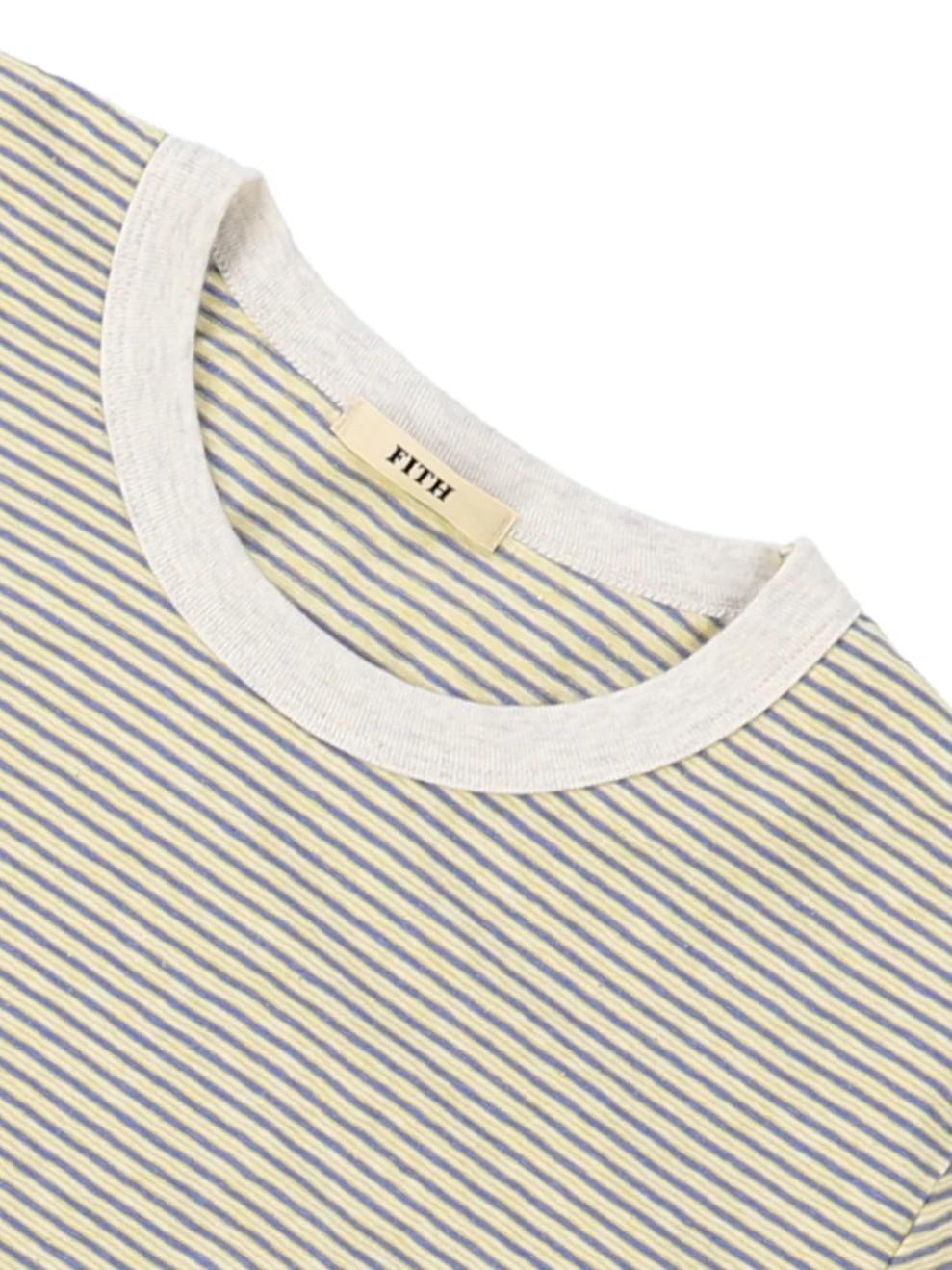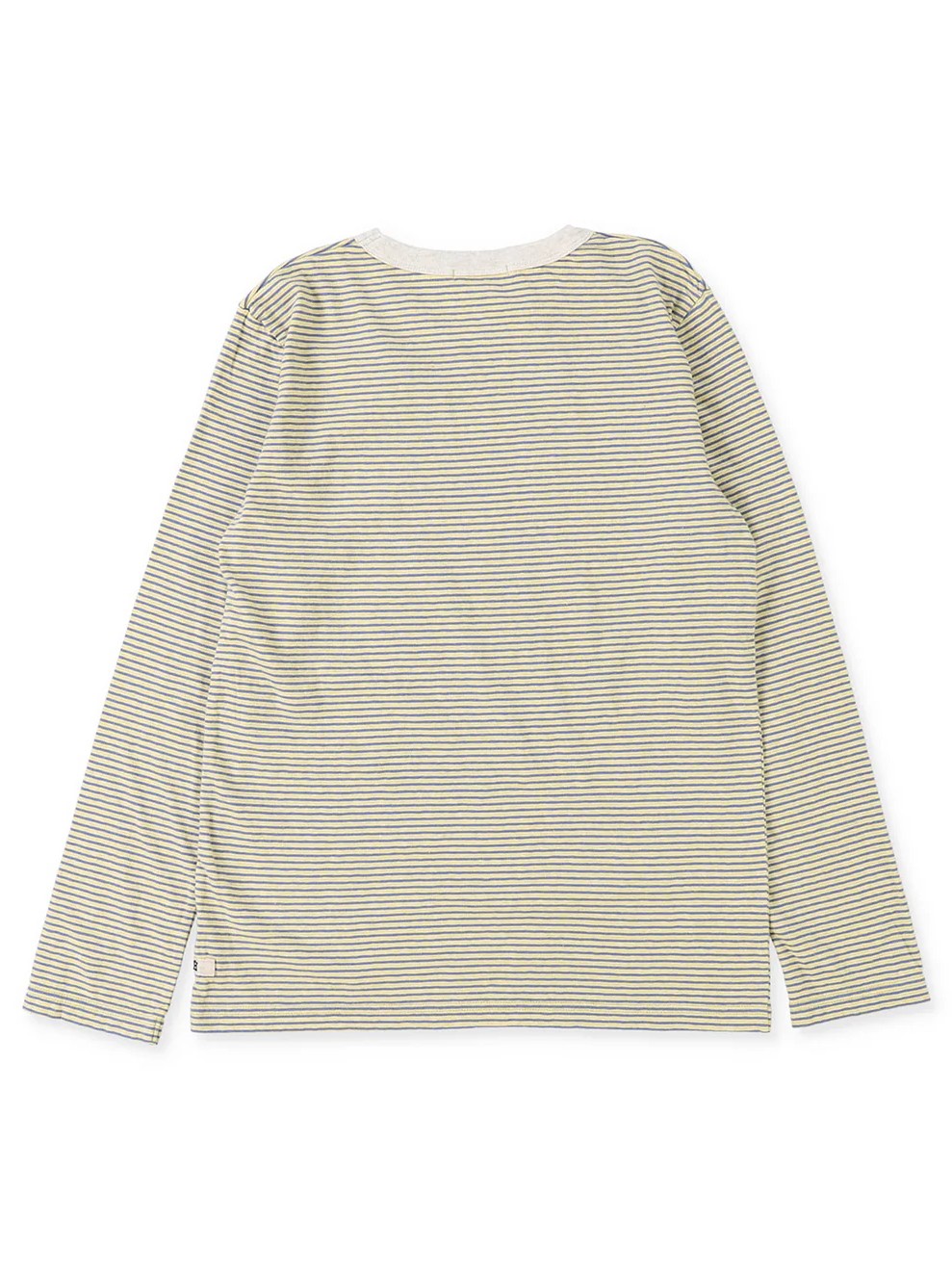 The Recycled Cotton Striped L/S Tee by FITH is a long-sleeved t-shirt featuring a soft, fluffy border pattern that takes advantage of the natural unevenness of the yarn. This t-shirt is designed with a comfortably compact silhouette for a refined and structured fit.