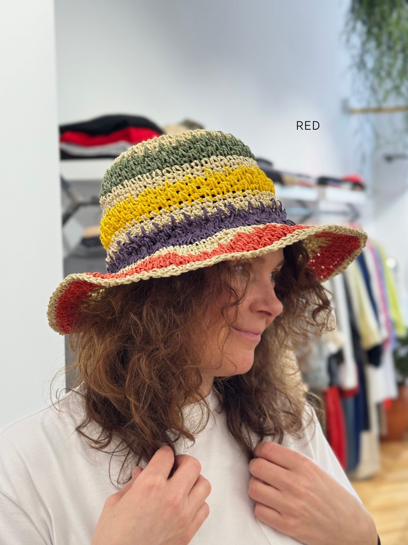 The versions with blue, red, and yellow outer rim colors are soft, hand-painted hats designed with an organic shape that fits securely on the head. These models feature a medium-sized brim and are engineered to be fully foldable, allowing them to be carried comfortably without sustaining damage to the structure.