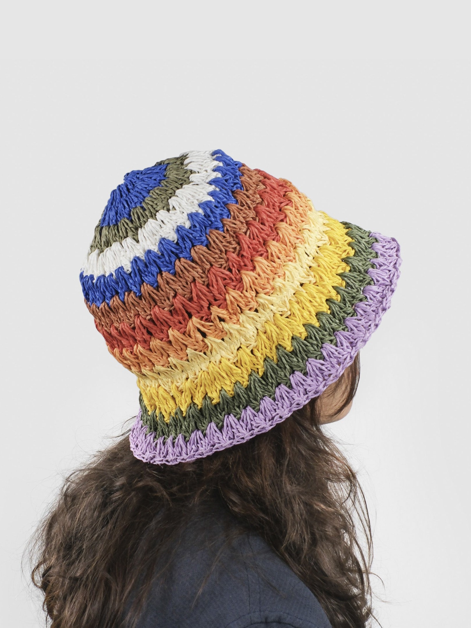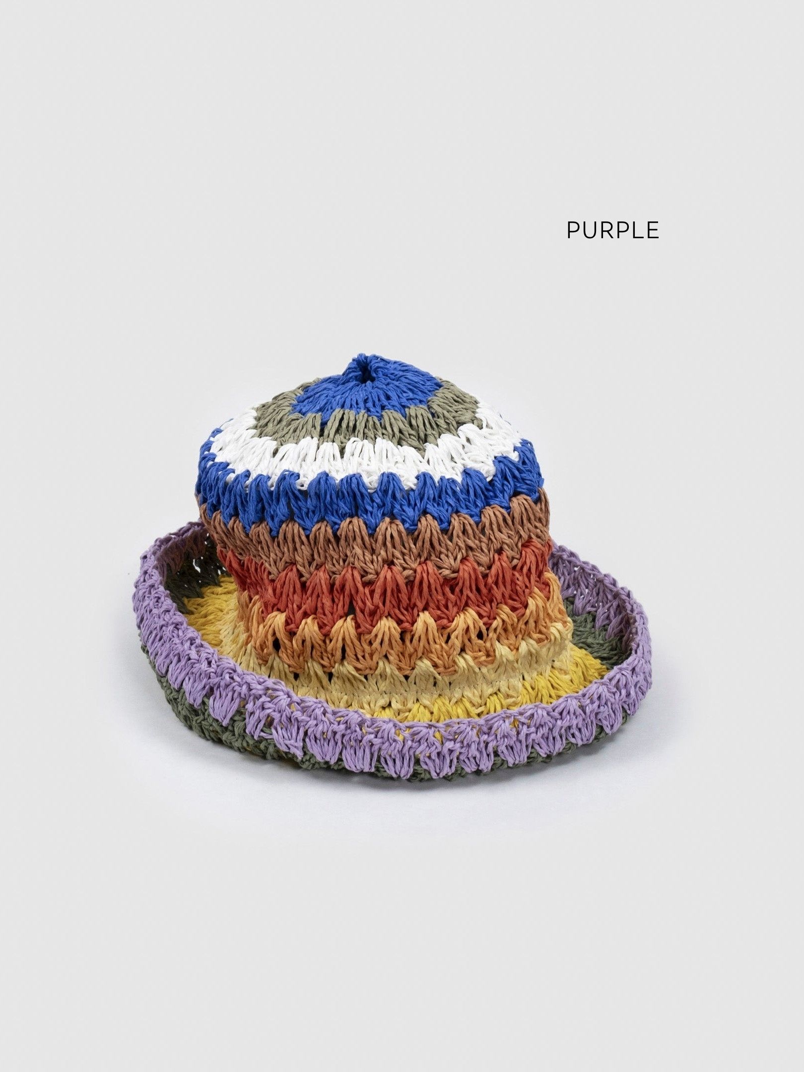 The version featuring a purple outer rim color is one of the brand’s foundational creations, born from spontaneous creativity and featuring a turned-up brim available in numerous materials and shapes.
