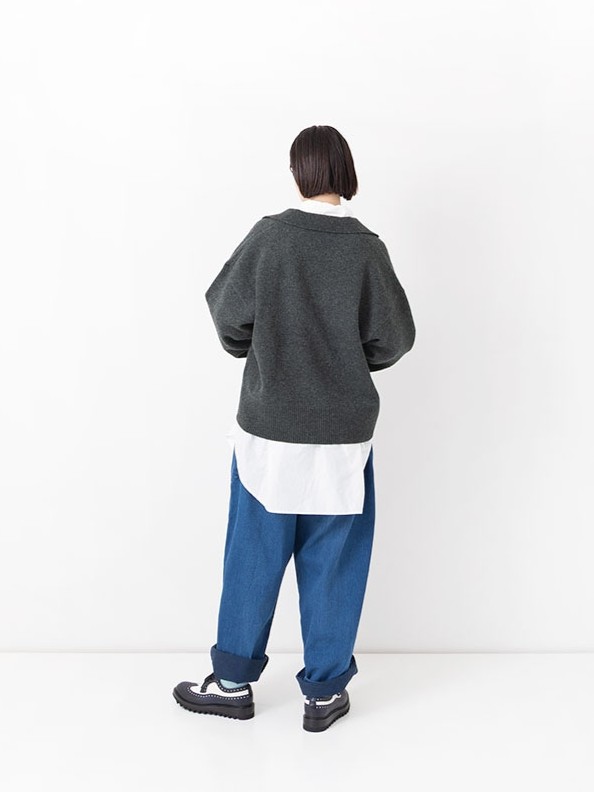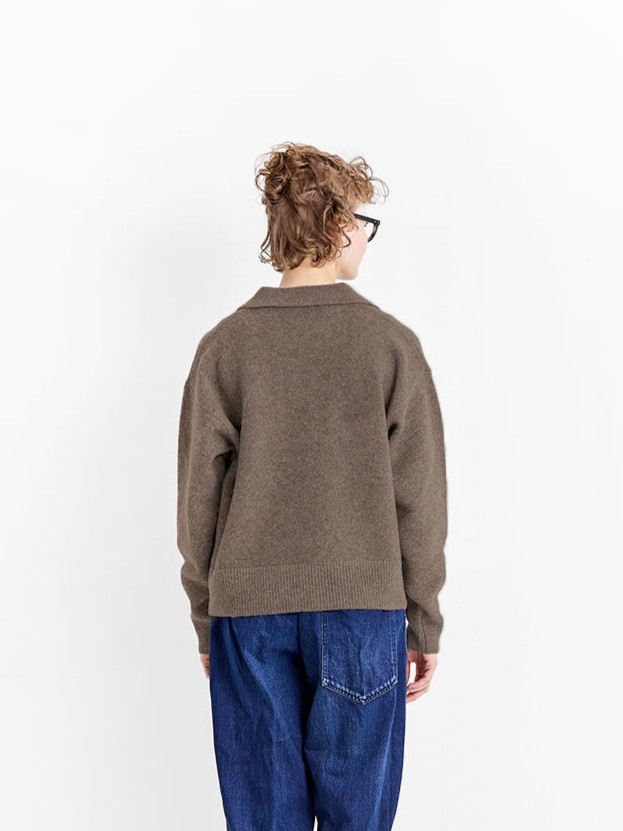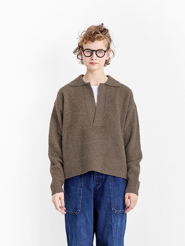 The Skipper Color Yak Wool Knit by Veritecoeur is designed with a deep skipper neckline and a collar. The cuffs and sleeves are made of a soft rib knit which provides a held-in feel. The item is ideal for layered styling. It is made using a yarn blended with a high ratio of luxurious YAK wool, which has fine, long fibers. It offers warmth and an extremely soft feel against the skin.