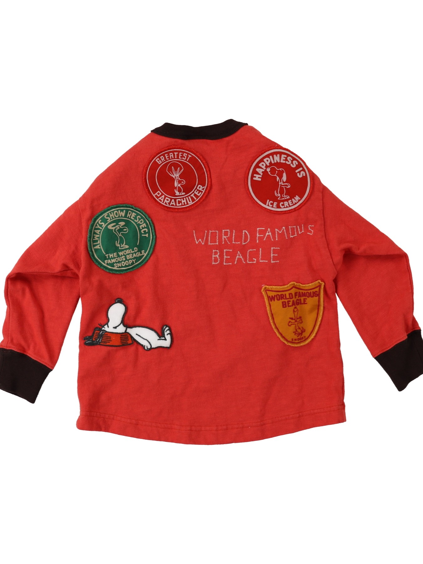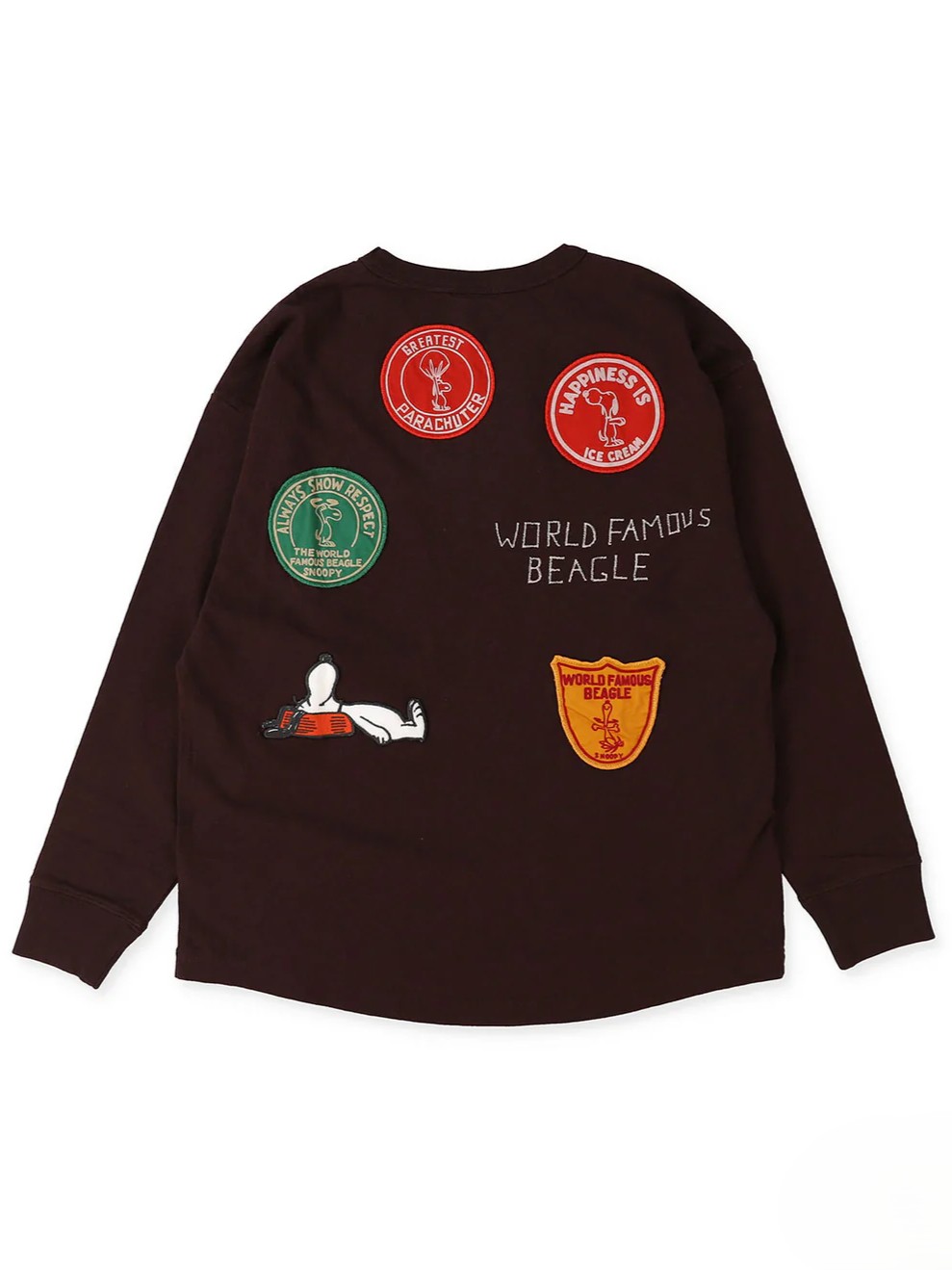 The SNOOPY HEAD Tee by Denim Dungaree features five striking patches with Snoopy on the back. The lettering on the front is set by hand, not computer-generated, which gives it a natural and handmade feel when worn. This makes it a timeless piece.