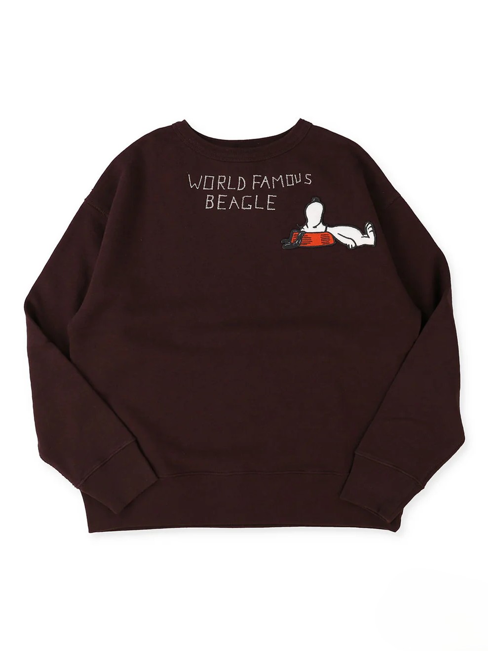 The SNOOPY SLEEP Sweatshirt by Denim Dungaree features a cute appliqué of Snoopy happily sleeping with his food bowl as a pillow. The appliqué is super charming, as it even recreates the look of Snoopy’s fur.