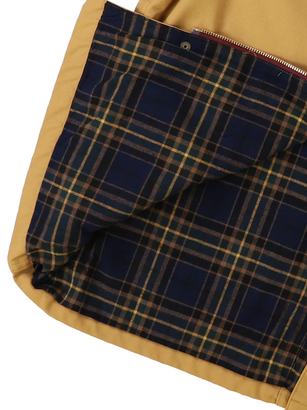 It is constructed from a duck weave made of a cotton and polyester blend, making the fabric light, tough, and quick-drying. The material is two-bath dyed, which results in a unique color and allows for distinctive fading over time.