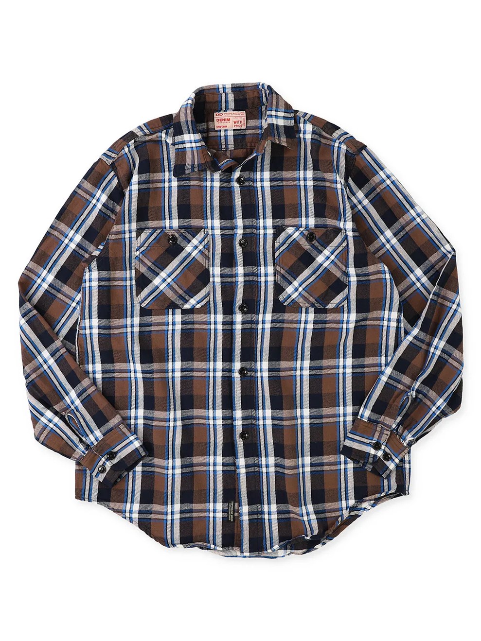 The Uneven Plaid Shirt by Denim Dungaree is an original DD check shirt made with uneven yarn. It features a tasteful color and its thin fabric makes it a useful item.