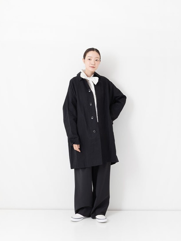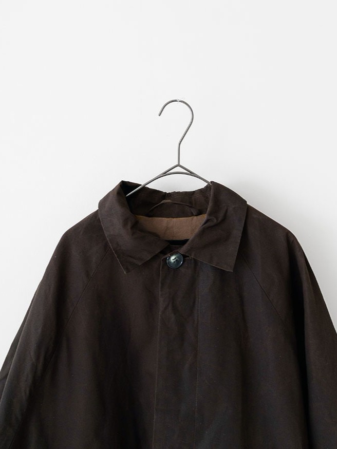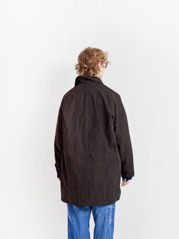 The Unisex Paraffin Coat by Veritecoeur is a relaxed-fitting short coat with raglan sleeves, made from a high-density cotton weather fabric with a paraffin coating. The coat is lined with a cotton flannel lining, which is made with a double-ply weft yarn for a deeper nap and a warm feel.