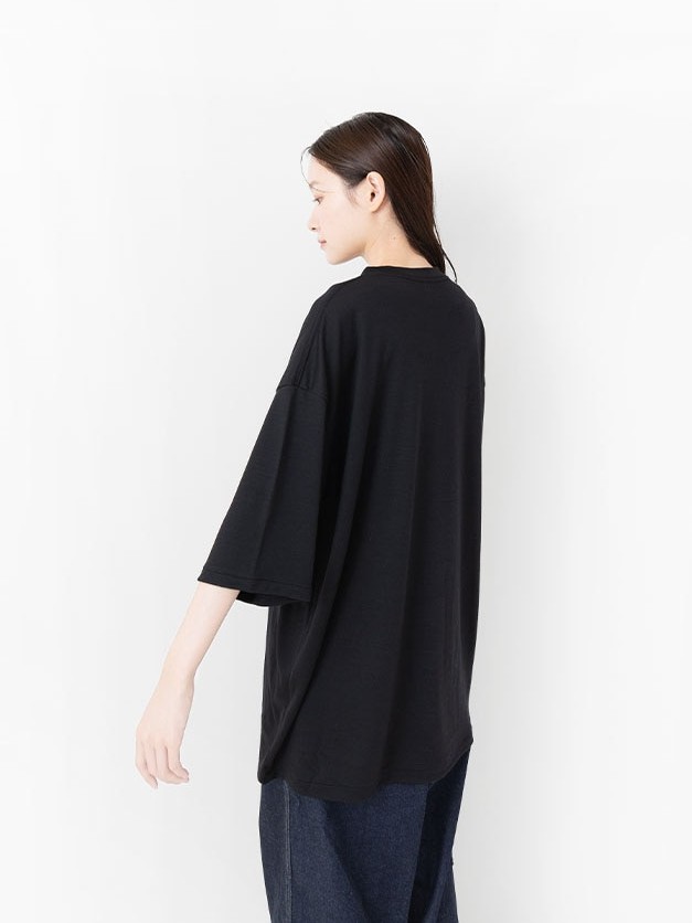 The Unisex Preshrunk Wool Tee by Veritecoeur has a box silhouette. The neckline has a snug fit for a neat look. It is knit from fine 2/72 wool yarn to create a delicate, smooth-surfaced material that feels good against the skin, with reduced pilling.