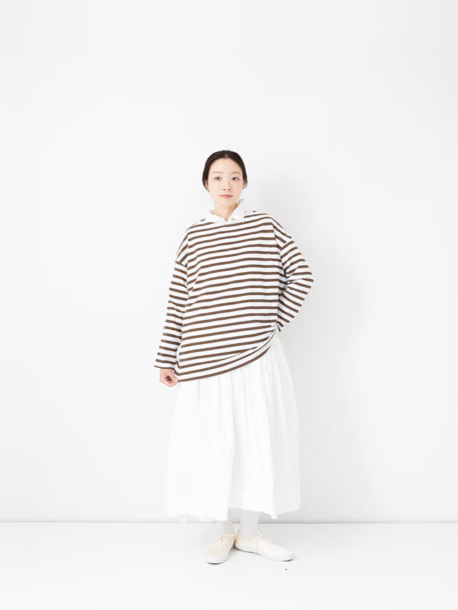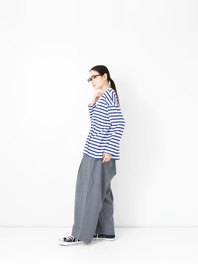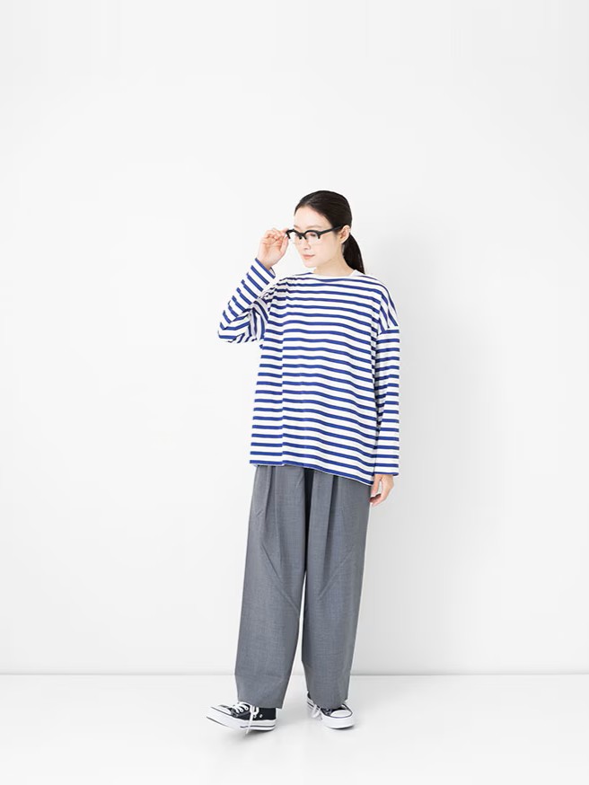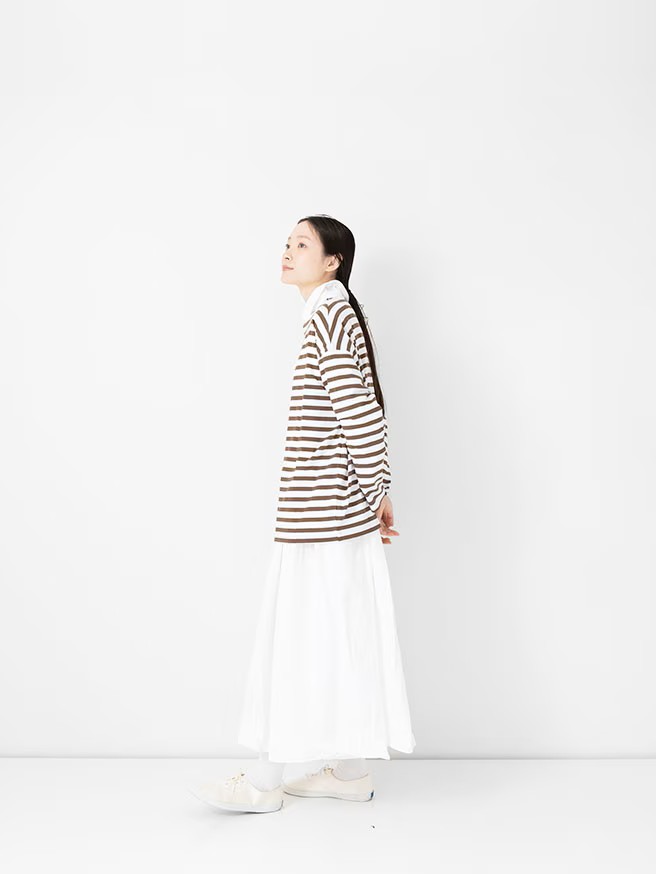 The 1×1.5 Border L/S T-shirt by Veritecoeur is constructed from an original material knitted with a specialized blend of two premium cottons.