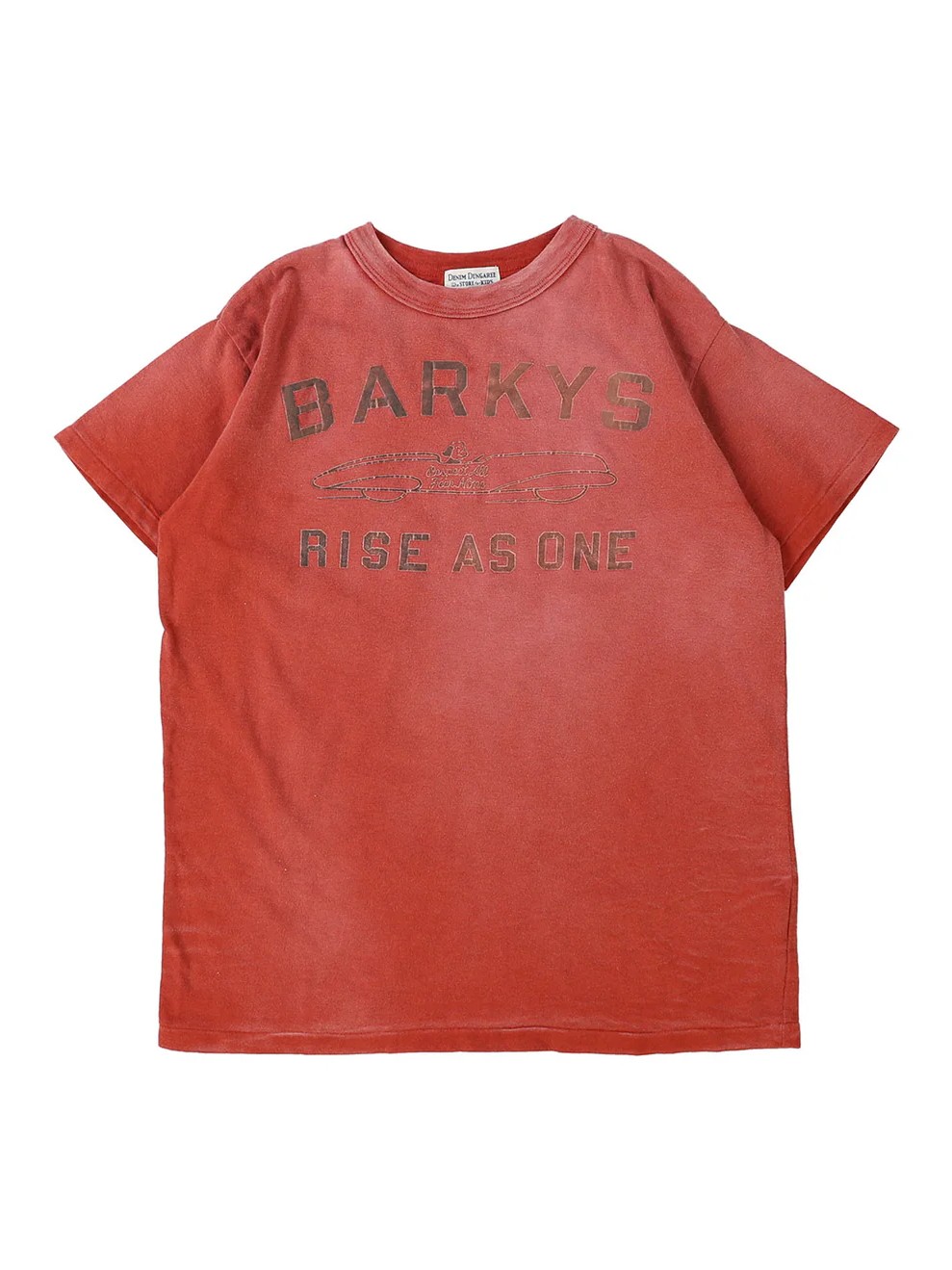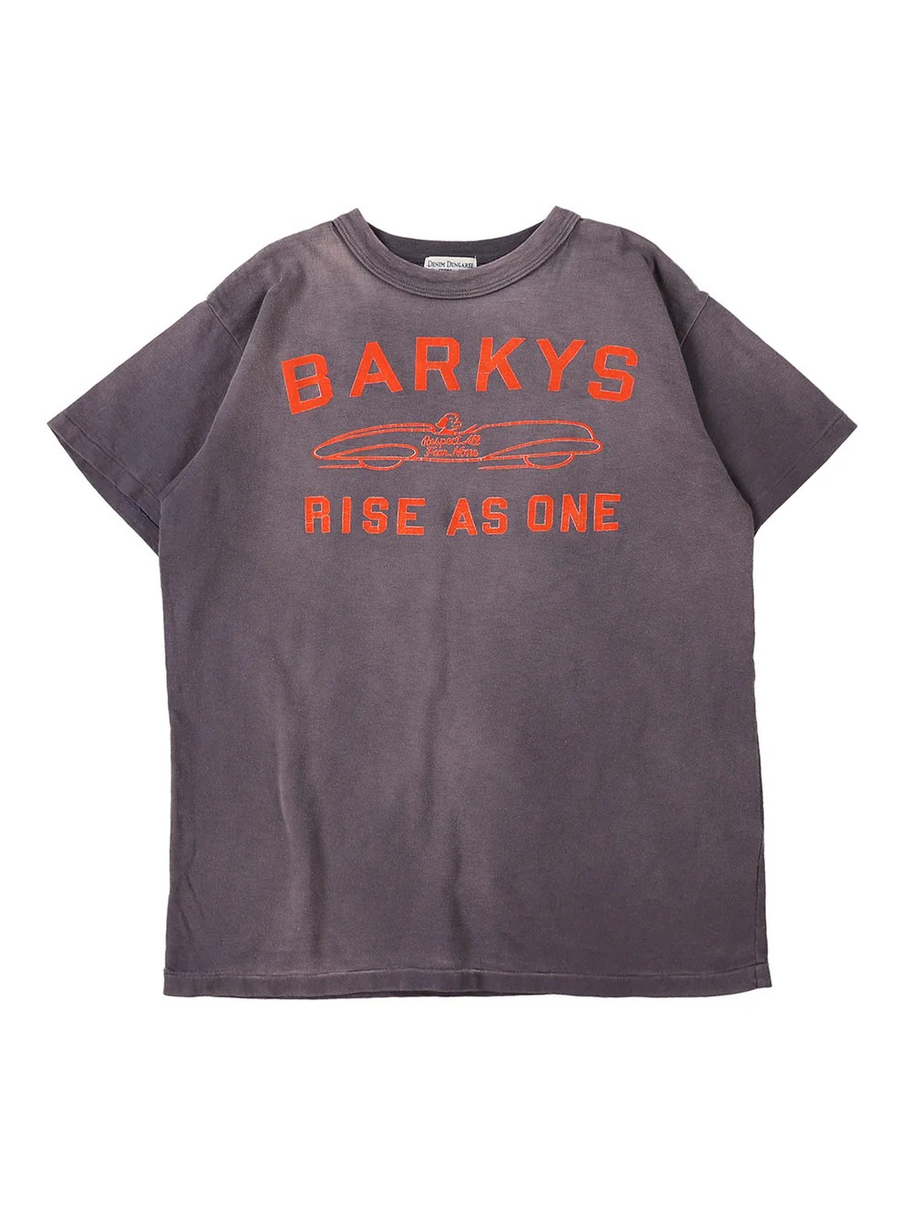 The Vintage Cotton Jersey BARKYS Tee by Denim Dungaree features a design inspired by a fictional racing team. This T-shirt is adorned with adorable embroidery that is meticulously crafted to appear hand-embroidered, adding a unique and personal character to the piece. Finished with a natural, worn-in look, this T-shirt provides a soft, seasoned aesthetic and is engineered to be comfortable right from the start.