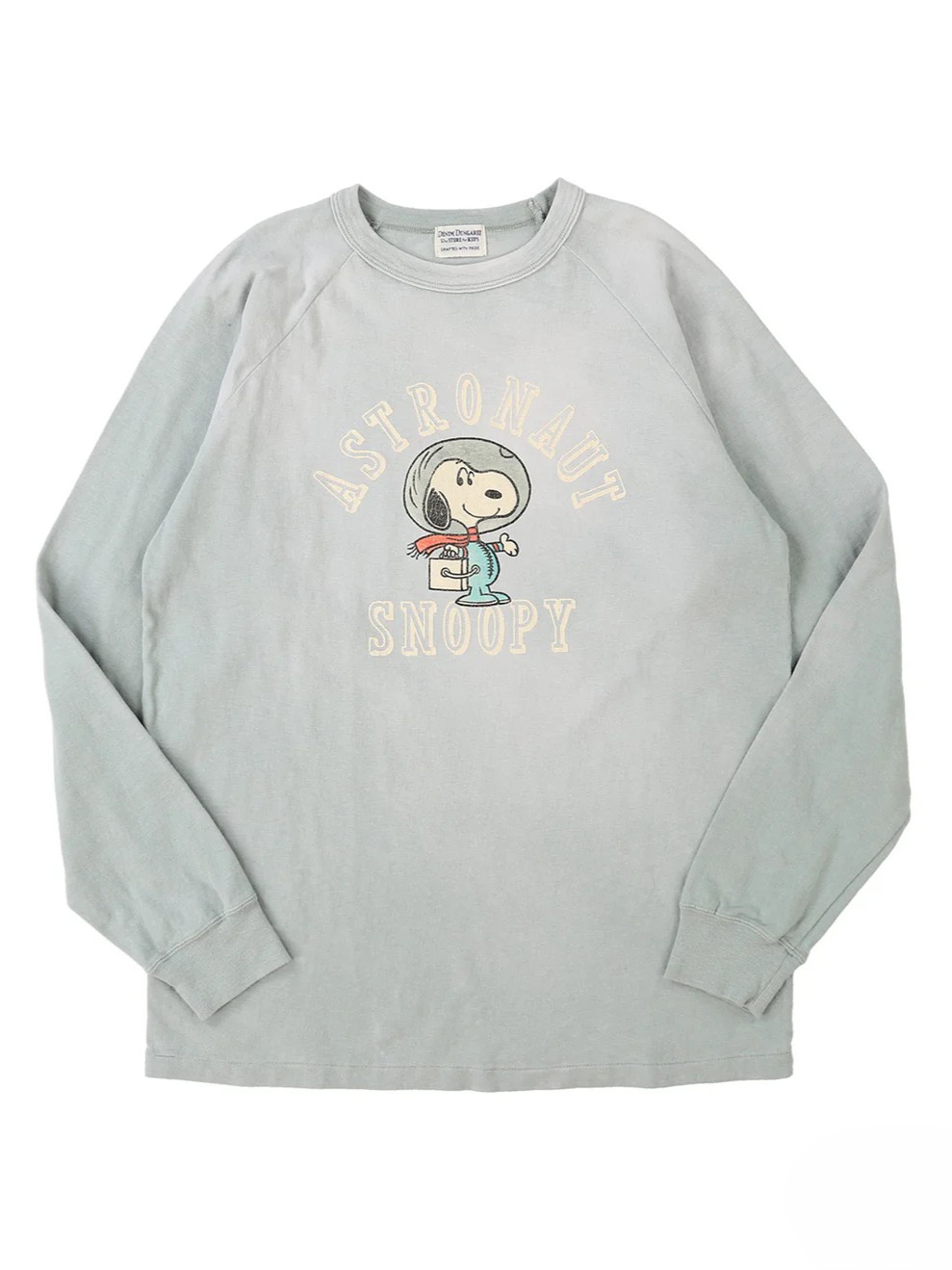 The Vintage Cotton Jersey SNOOPY ASTRONAUT Tee by Denim Dungaree is a special raglan long-sleeved T-shirt featuring Snoopy dressed as an astronaut. This design artfully combines a fantastic atmosphere with Snoopy’s signature cuteness, creating a standout visual narrative. Built on a foundation of soft vintage-style jersey, this long-sleeved T-shirt offers a unique and charming aesthetic that remains easy to wear across various settings.