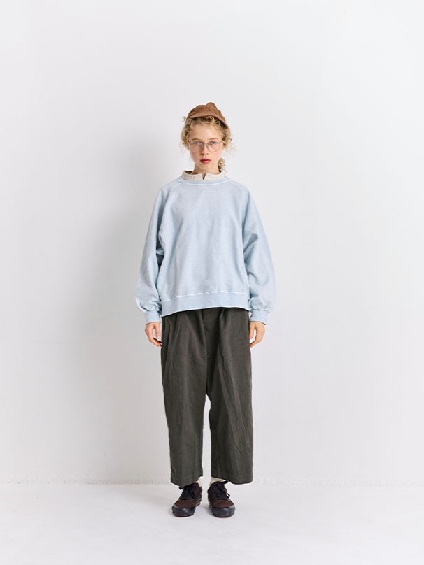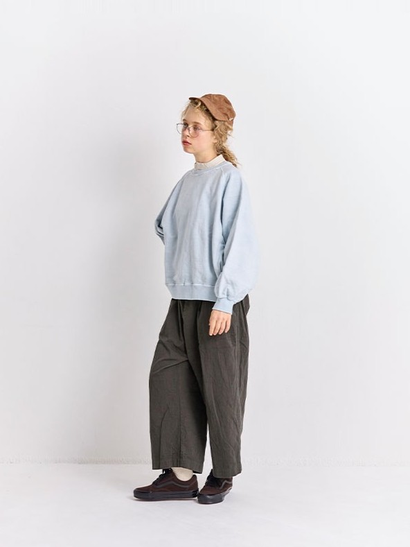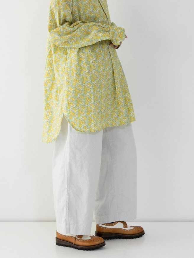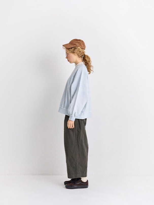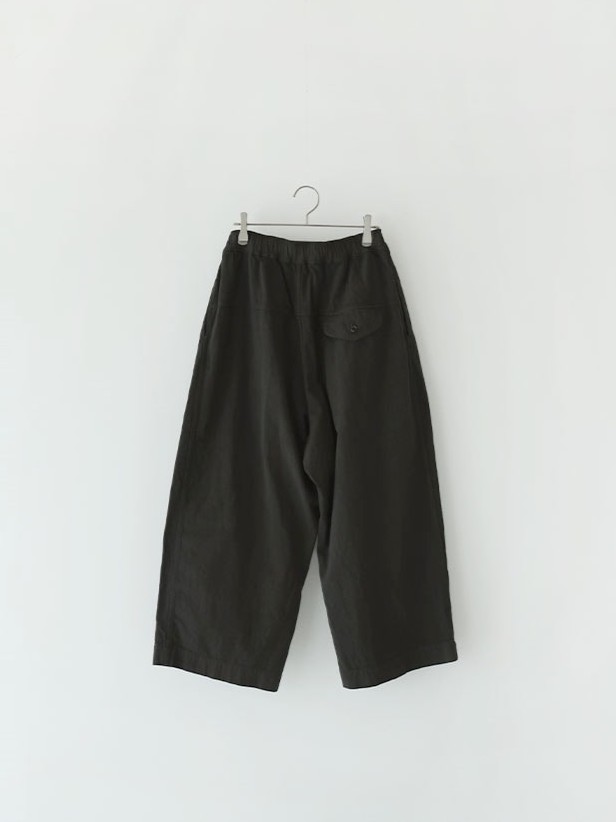 The Washer Pants by Veritecoeur are easy pants with a wide, straight silhouette and an open front. They have tucks at the sides for extra room around the waist, which can be adjusted with both elastic and a drawstring.