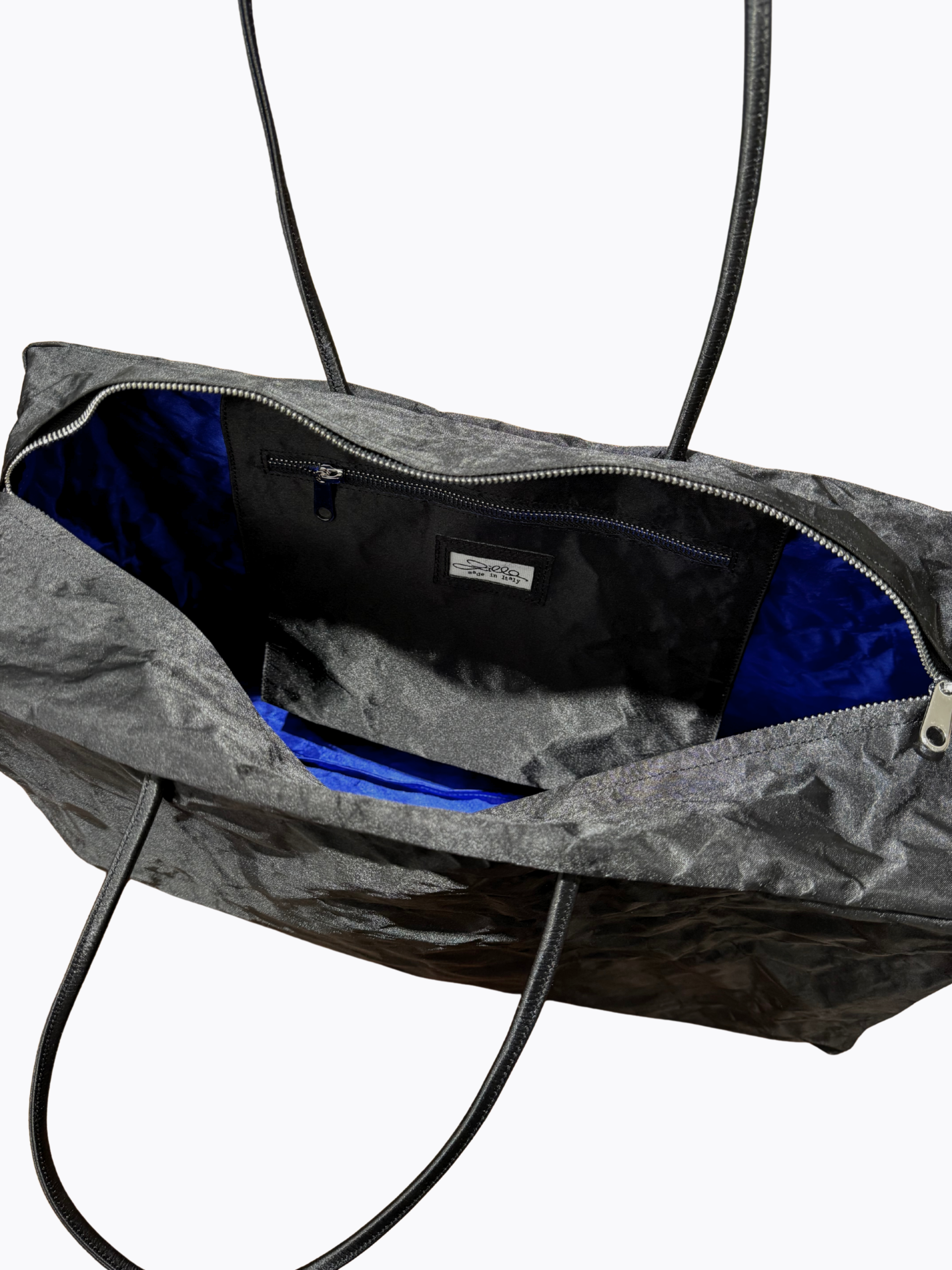 The Duffle Bag Sat by Zilla is a spacious shoulder bag crafted from ultra-strong and durable satin featuring a distinct shiny finish. Designed for both high-capacity utility and a refined aesthetic, it includes a secure zip closure and ample internal space for all essentials.